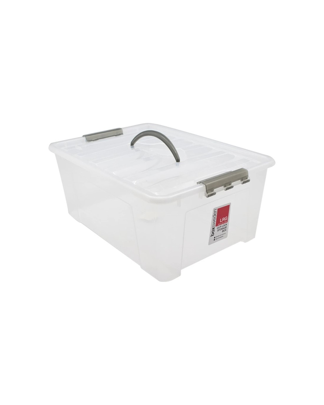 The Boxsweden 20L Carry Box Storage Organiser Container is designed for efficient household organisation. Its transparent body allows easy identification of contents, making it a practical choice for storing a variety of items.