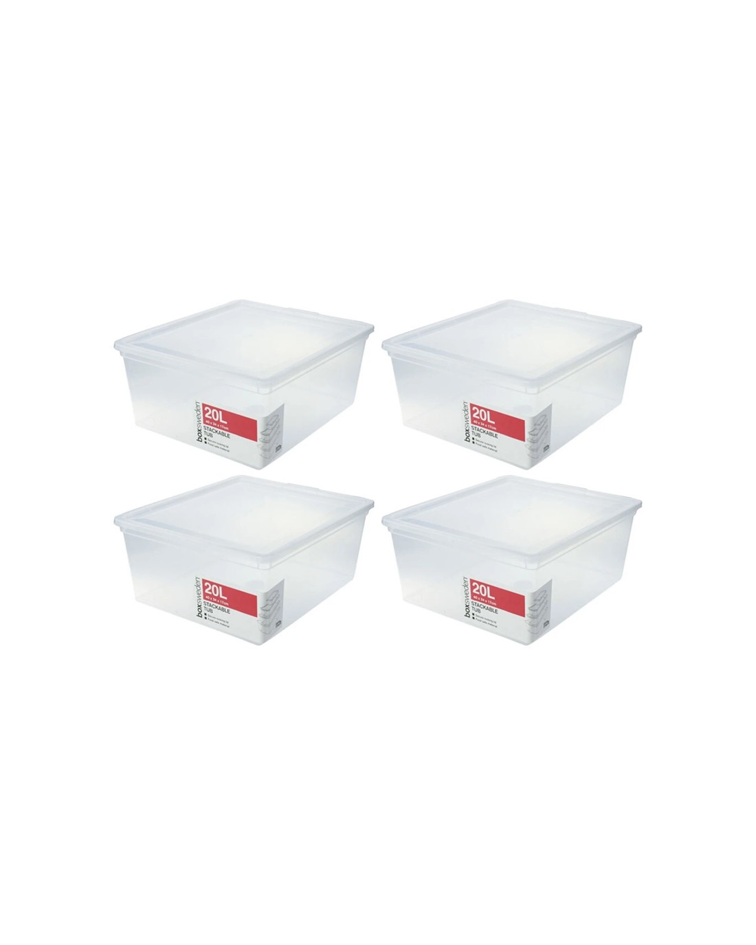 Boxsweden 4x 20L Storage Tub Stackable Food Safe Storage Container Value Pack - Plain