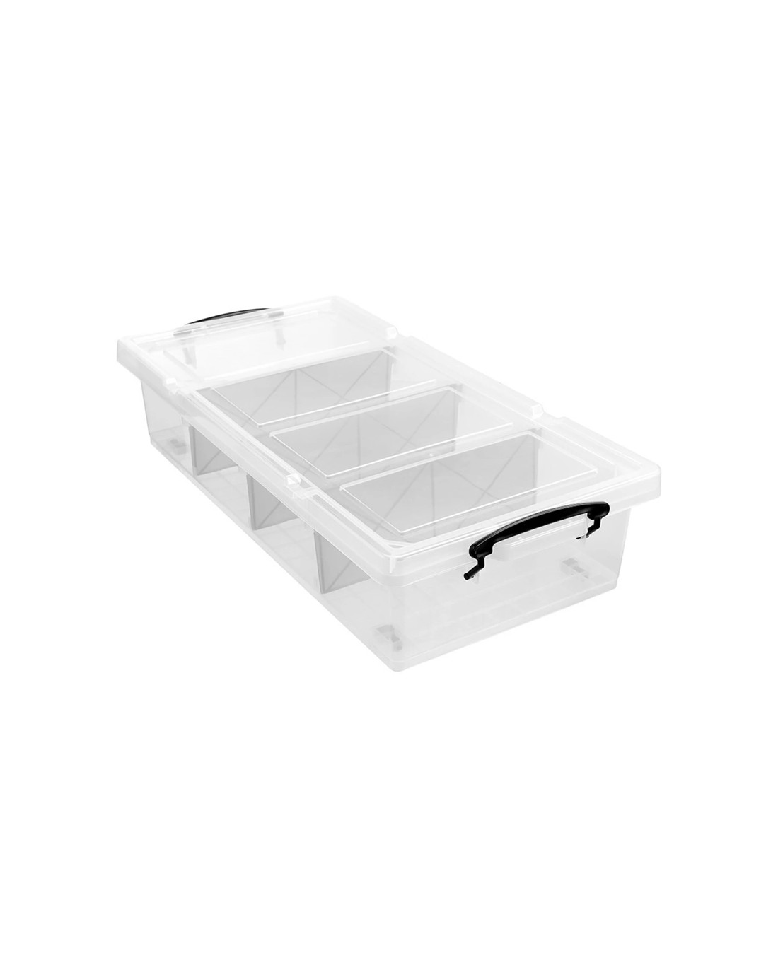 Sold by KG SuperStoreBoxsweden 76x38cm 35l 4 Section Compartment Storage Container Home Office Tub Organiser - Clear