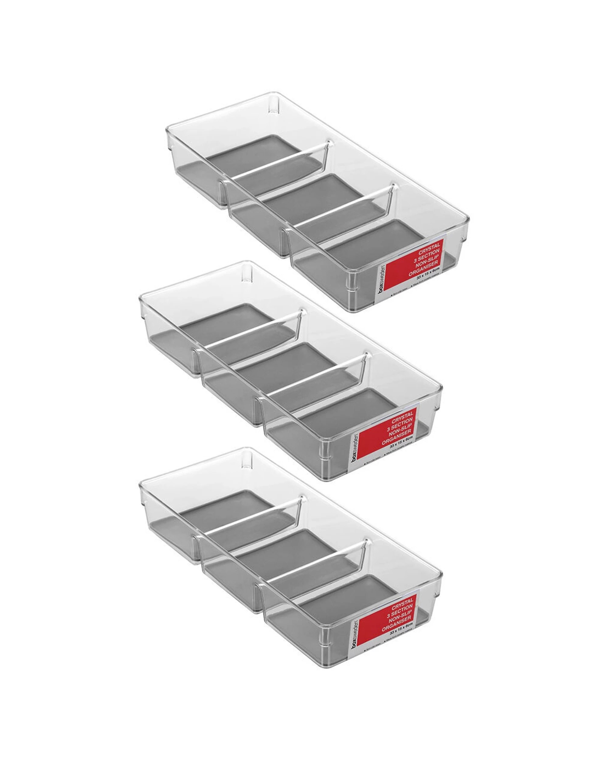 Boxsweden Crystal 3 Section Non Slip Organiser - BPA Safe Storage 33cm - Plain