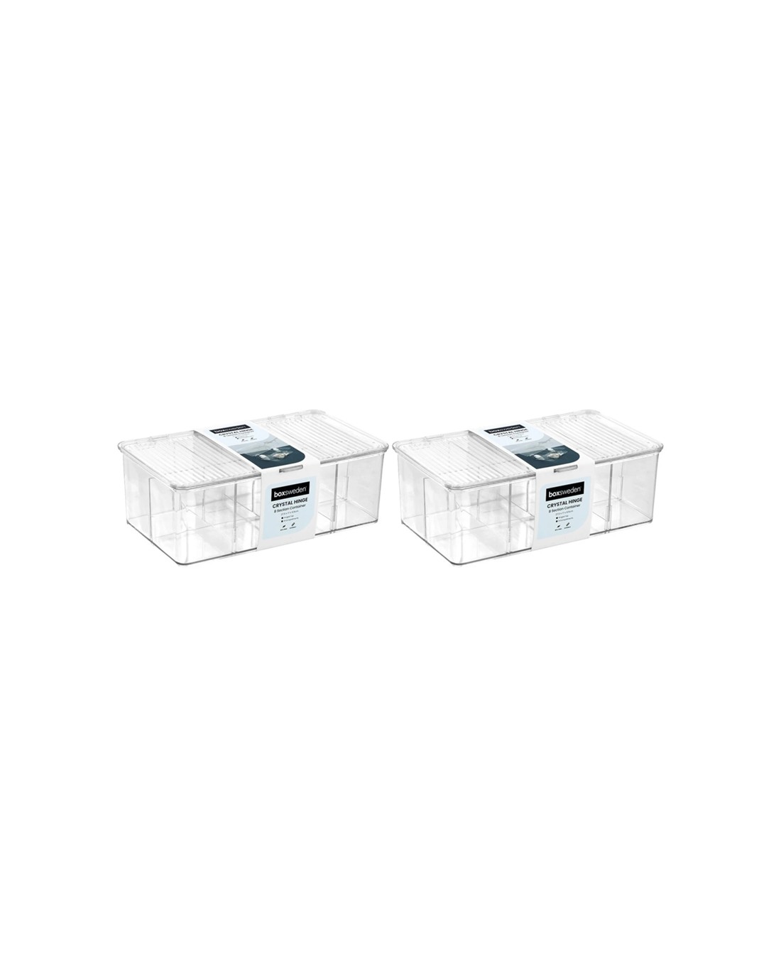 - Includes: 2x Boxsweden Crystal Hinged 8-Section Organiser 27.5x17cm Containers