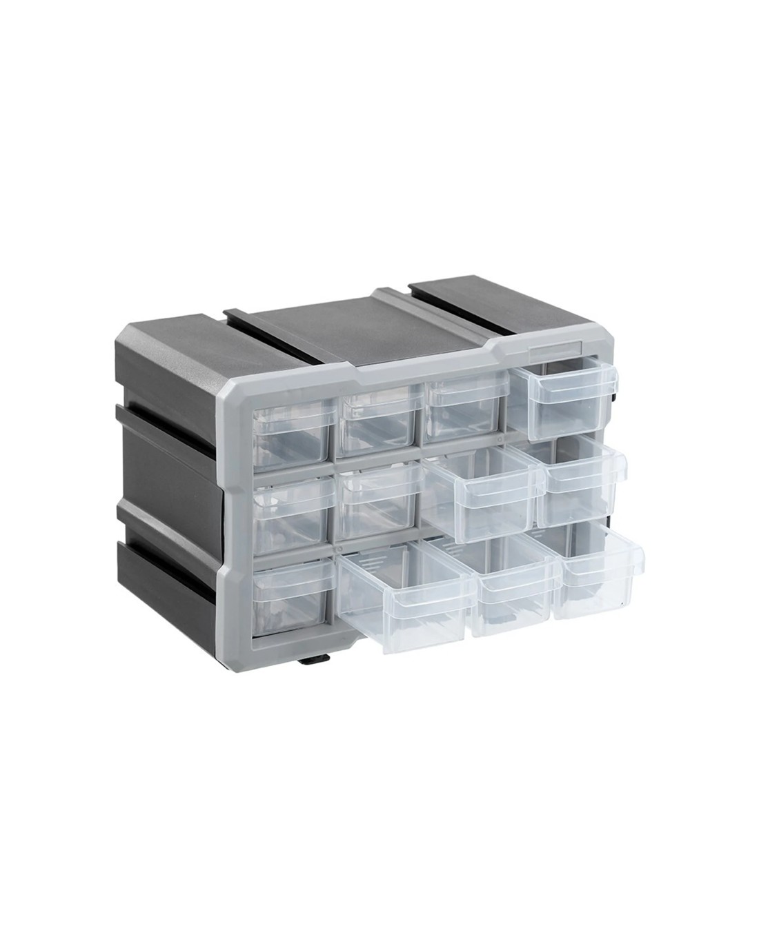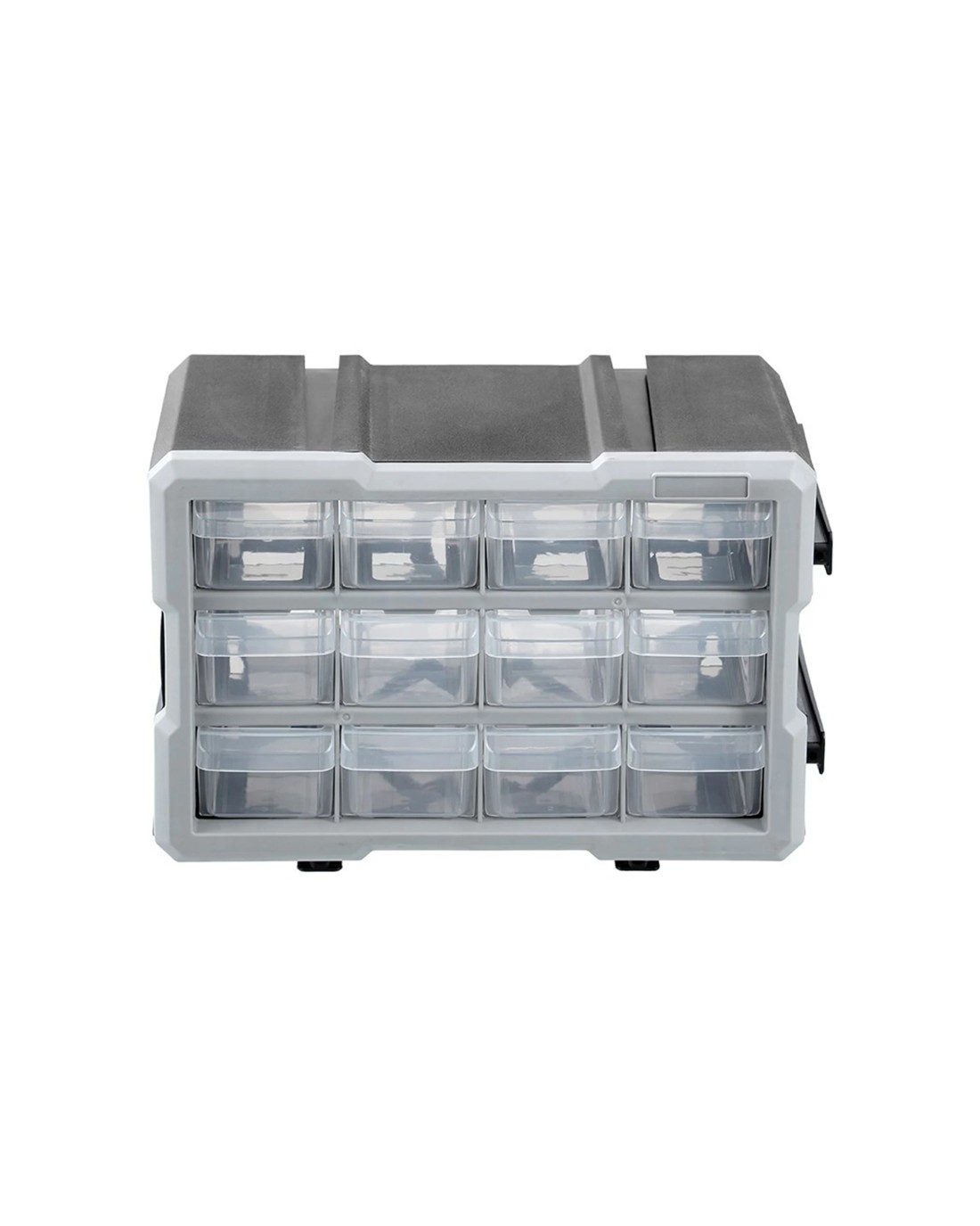 This organiser features twelve drawers, each capable of holding small items, making it easy to find and access contents quickly. Crafted from durable, BPA-free plastic, it is built to last and withstand regular use. The transparent drawers provide clear visibility of stored items, simplifying your organisational tasks.