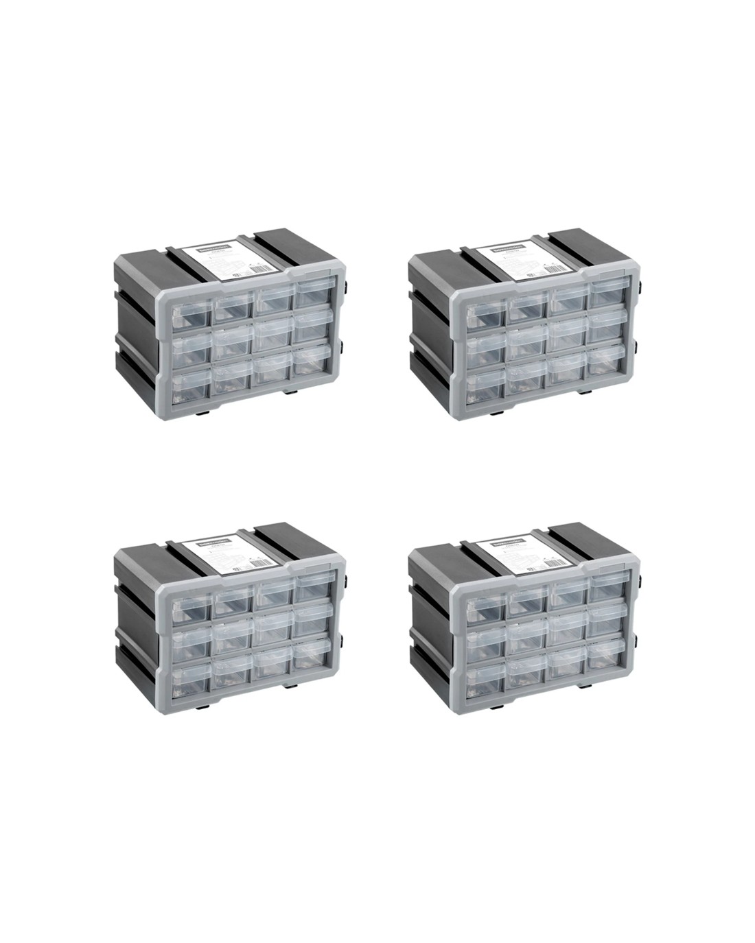 Sold by KG SuperStoreBoxsweden Garaz 12-Drawer Storage Organiser 29.5x19.5cm 4PK Stackable Modular - grey