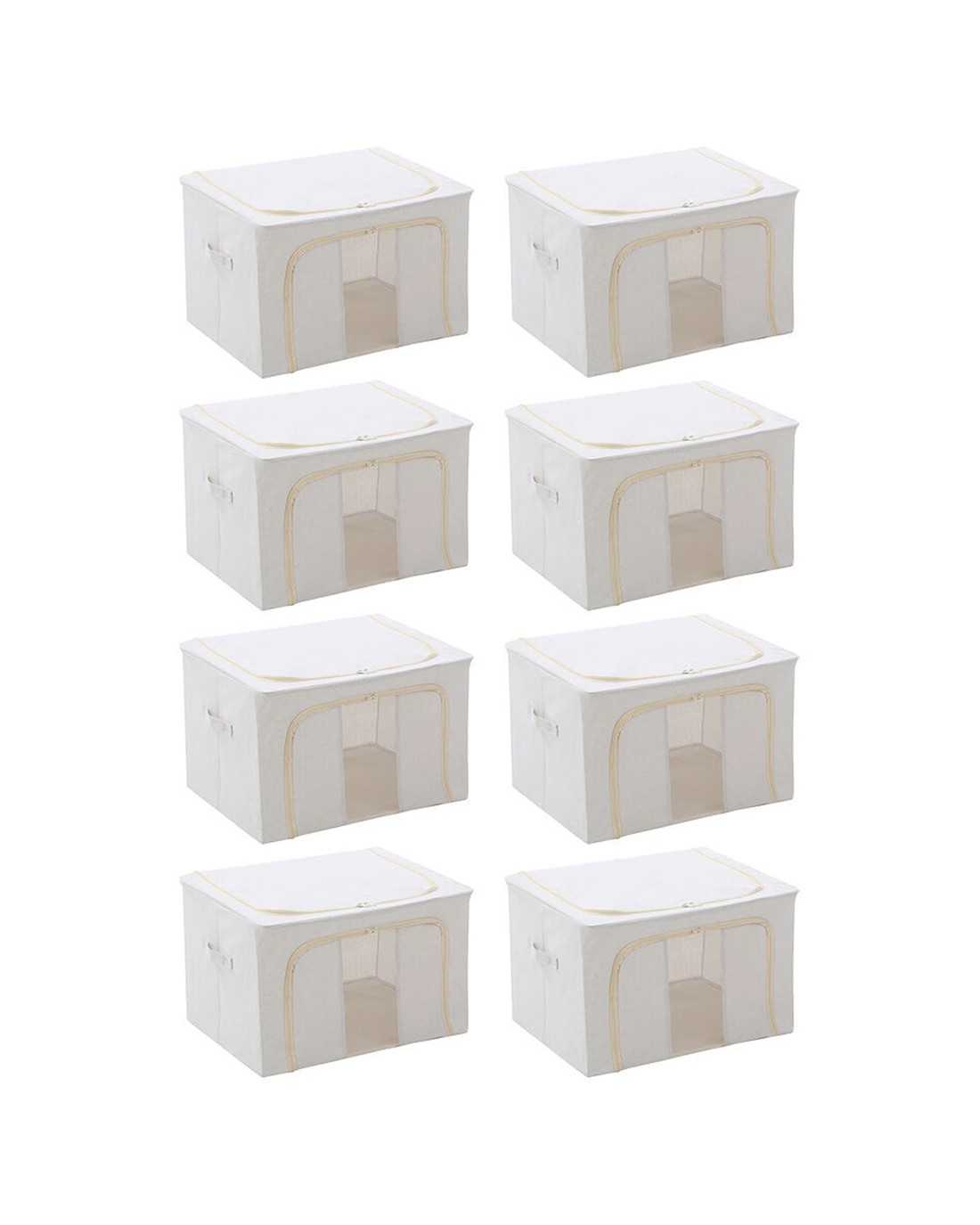 These boxes measure 50 x 40 x 33 centimetres, offering a versatile size that fits well into wardrobes, shelves, or storage areas. A set of eight boxes gives you ample capacity to organise multiple items across your home.