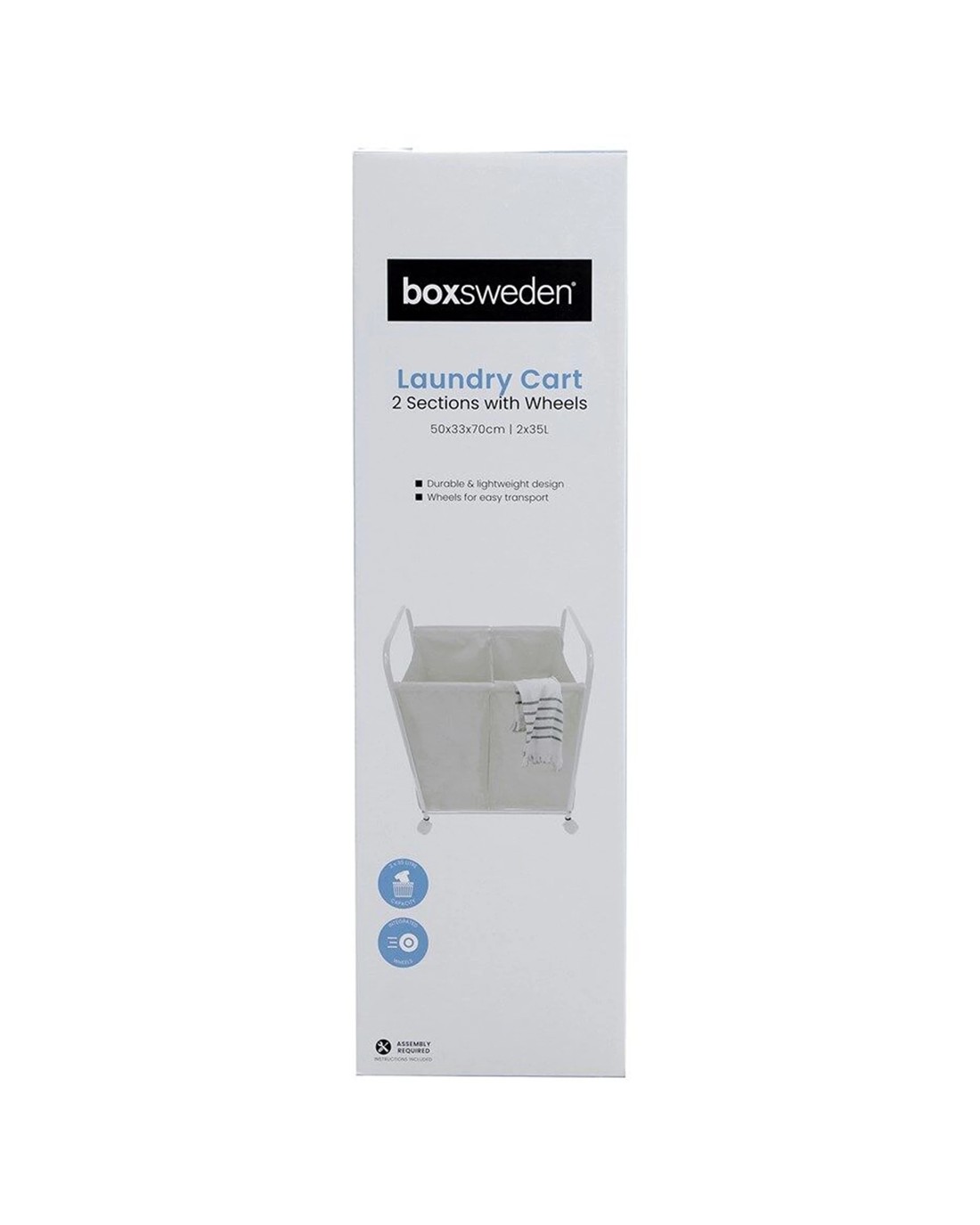 Sold by KG SuperStoreBoxsweden Lightweight Laundry 2 Section Cart With Wheels 50x33x70cm - Assorted