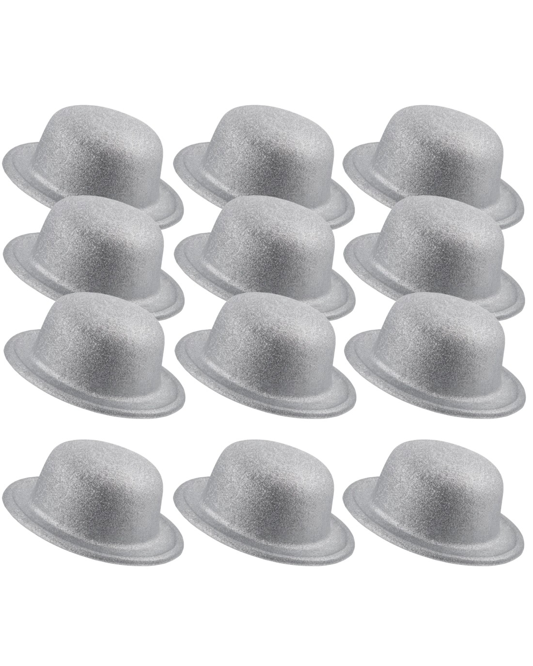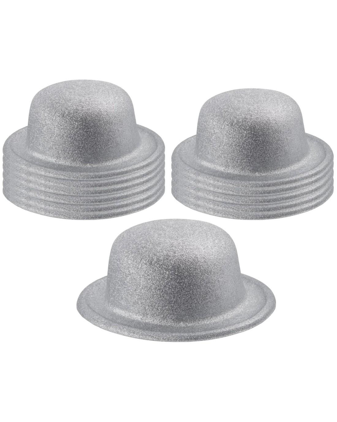 - Pack size: Includes 12 glitter bowler hats.