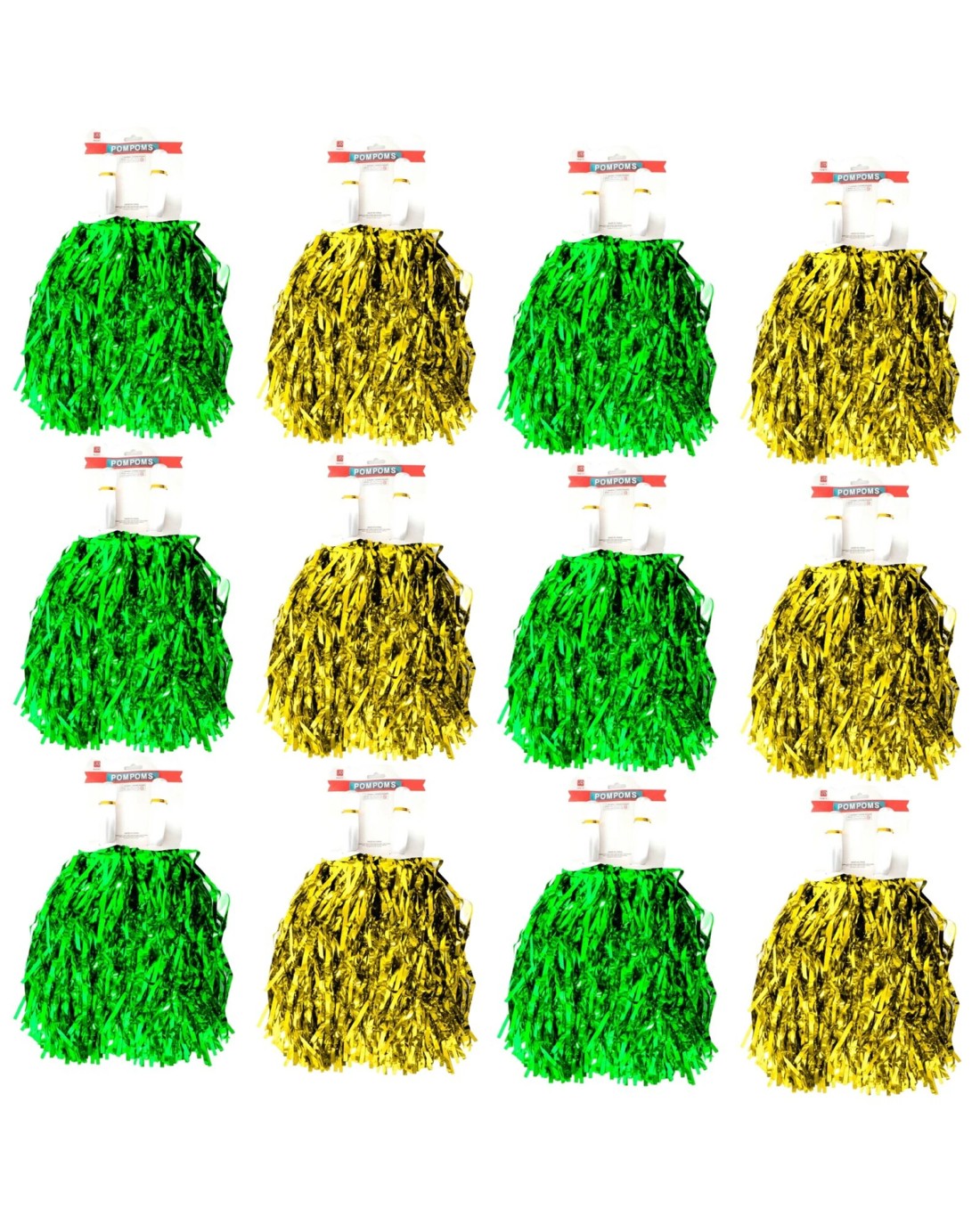 BR Costumes Metallic Cheerleading Pom Poms – 12-Pack in Green and Yellow