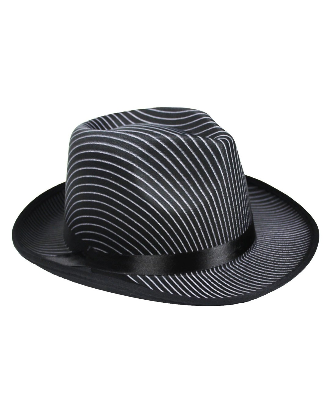 - Design: Classic trilby fedora shape with bold black and white pinstripe pattern.