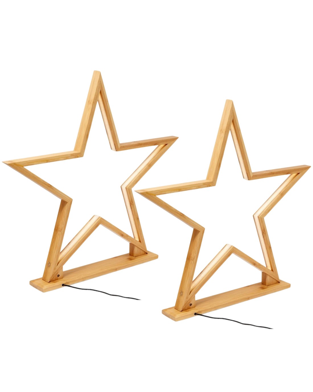 2x 52cm Large Bamboo Star LED Table Lamp Light - Modern Bedside in Natural Finish