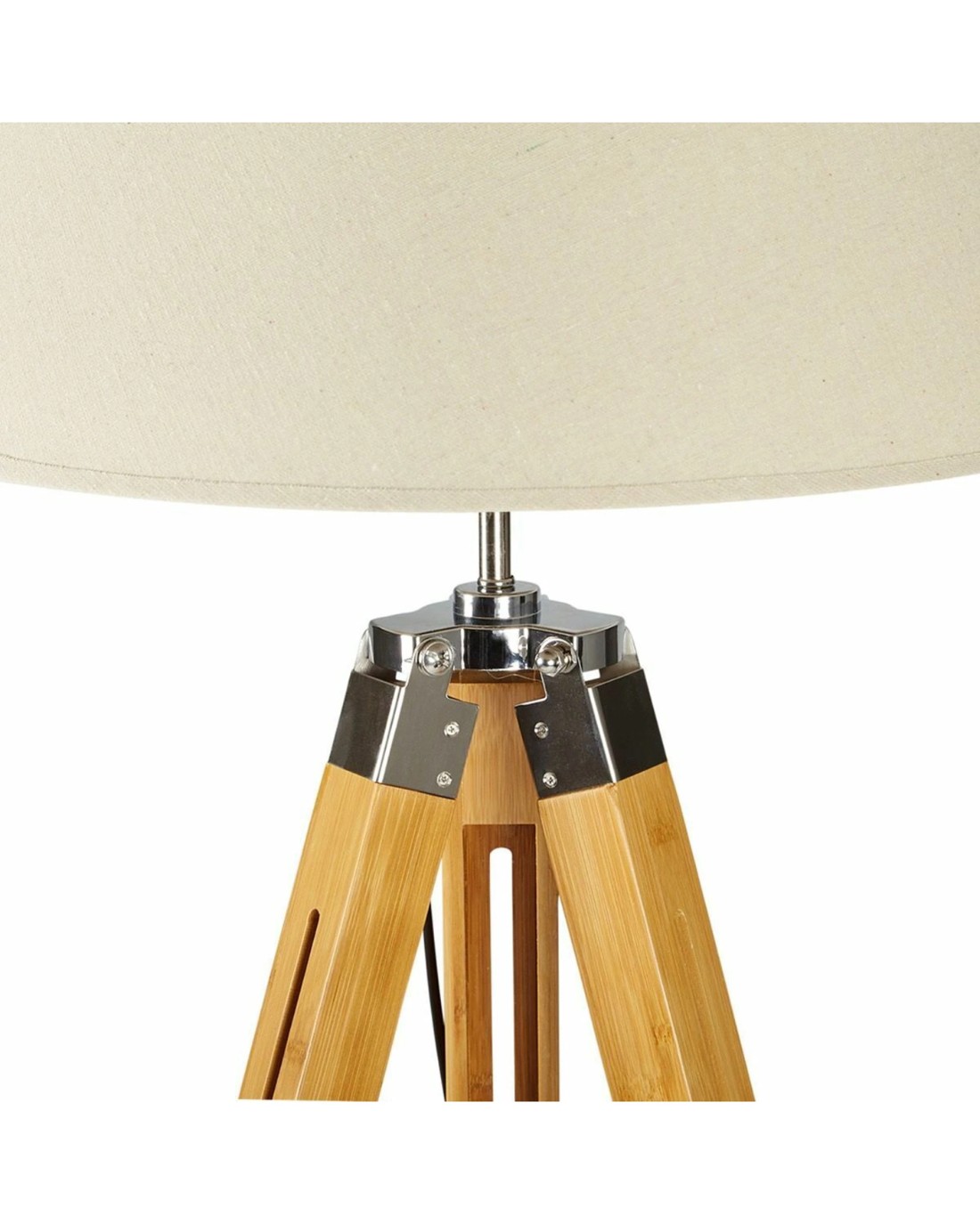 Modern style bamboo tripod floor lamp & beige linen shade.
