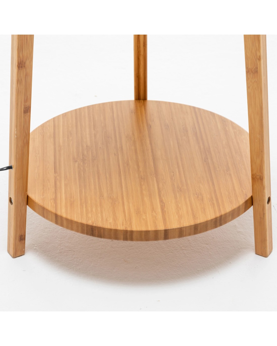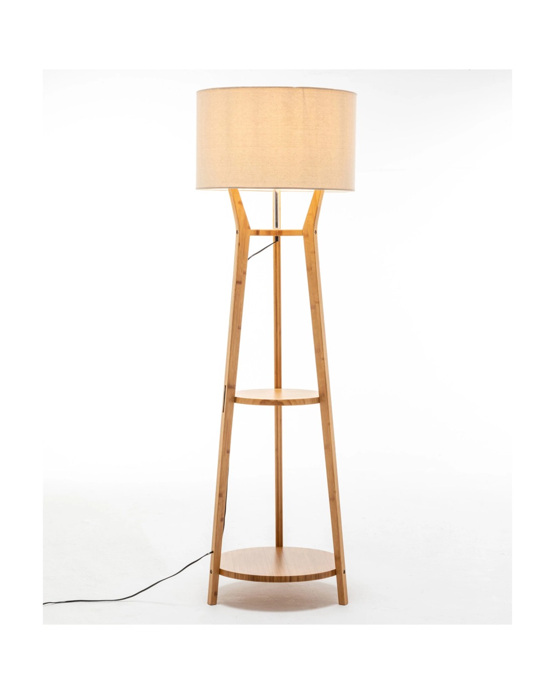 Sold by Boutique RetailerBR Home Bamboo Wooden Tripod Floor Lamp with Linen Shade and Shelves