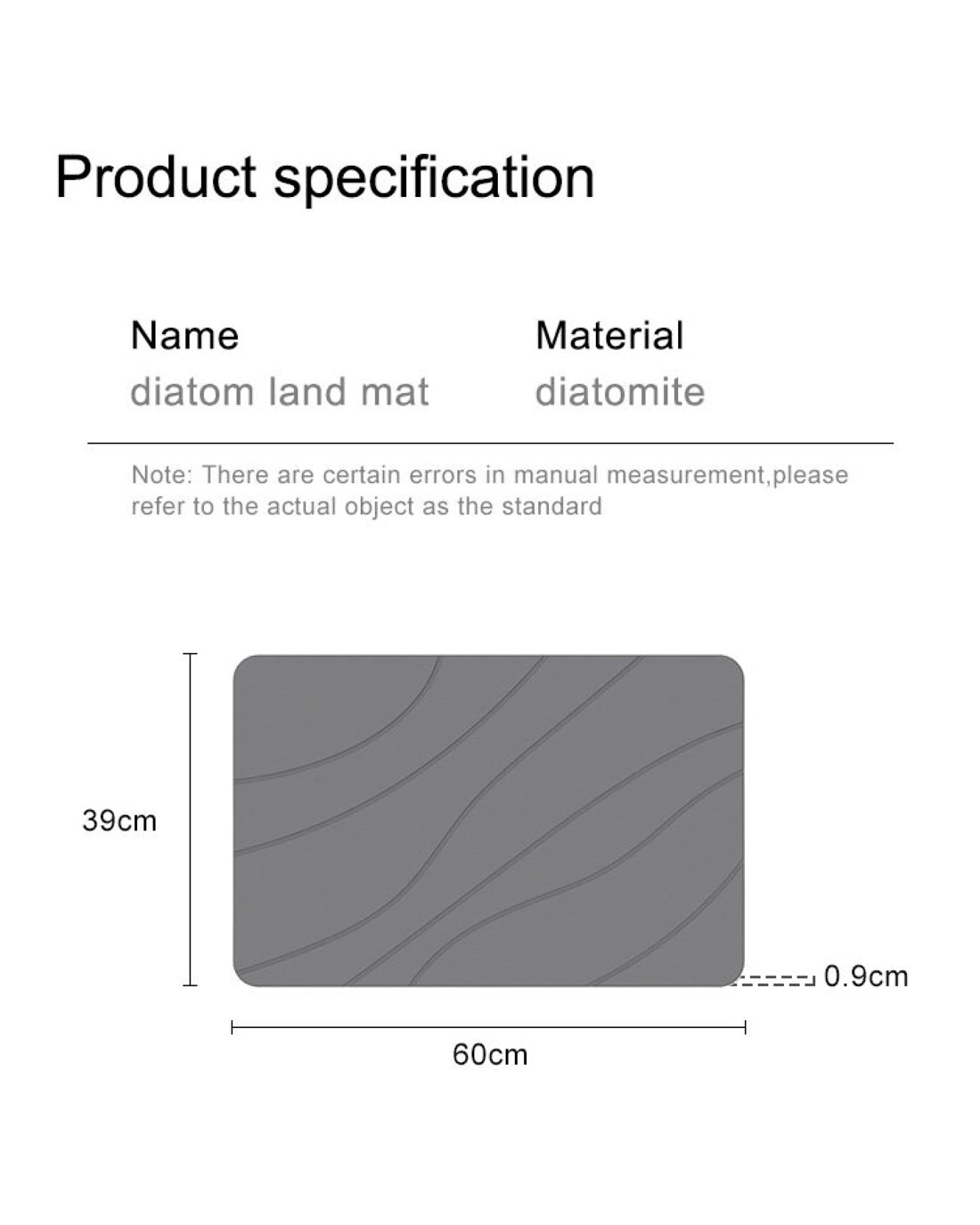 - Size: 60cm (L) x 39cm (W) x 0.9cm (D)