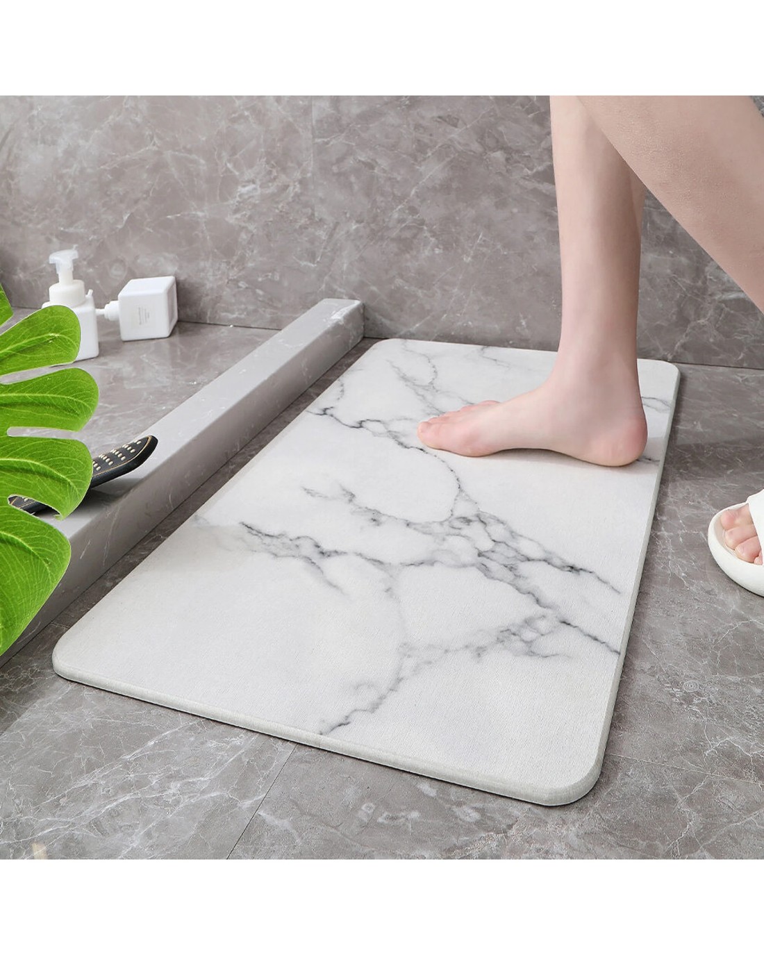 Upgrade your bathroom with the perfect blend of style and functionality with this marble-effect diatomite bath mat – keeping your space dry, clean, and elegant.