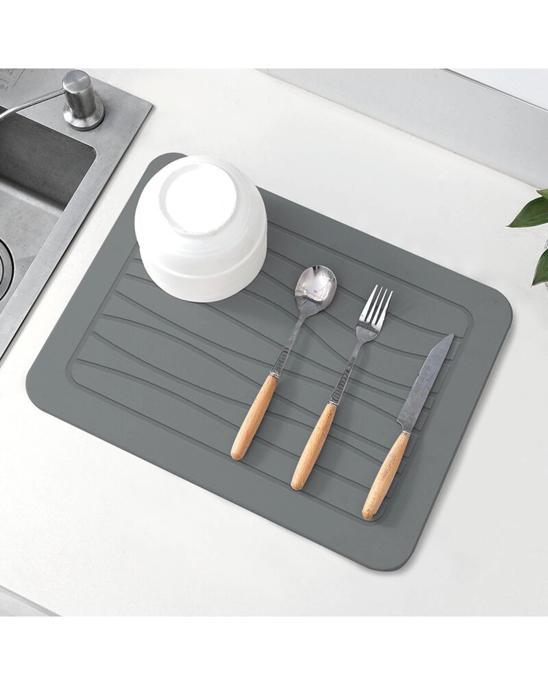 Keep your kitchen clean and dry with this hard diatomite dish drying mat, designed for quick water absorption and hygienic drying. Made from 100% natural diatomaceous earth, this stone drying mat absorbs excess moisture instantly, helping to prevent water buildup and bacterial growth. The wave-patterned surface enhances drainage, while the sleek dark grey design adds a modern touch to your countertop.