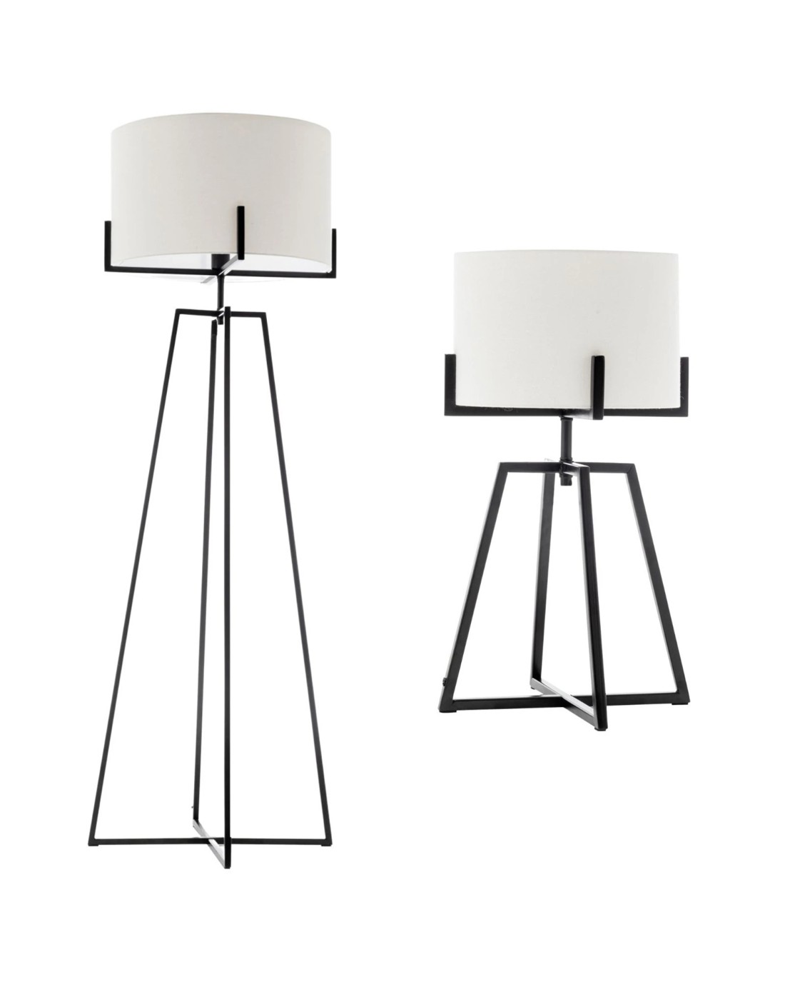 Modern Dimmable Floor Lamp + Table Lamp w/ Linen Shade Scandi - Matte Black