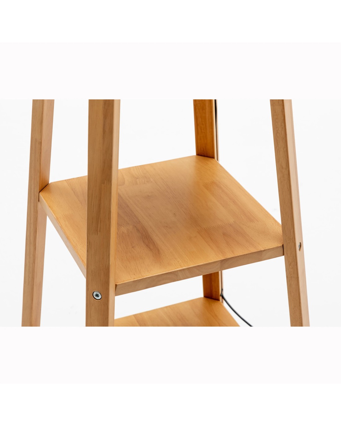 Sold by Boutique RetailerBR Home Natural Wood Floor Lamp with Storage Shelves and Off White Linen Shade