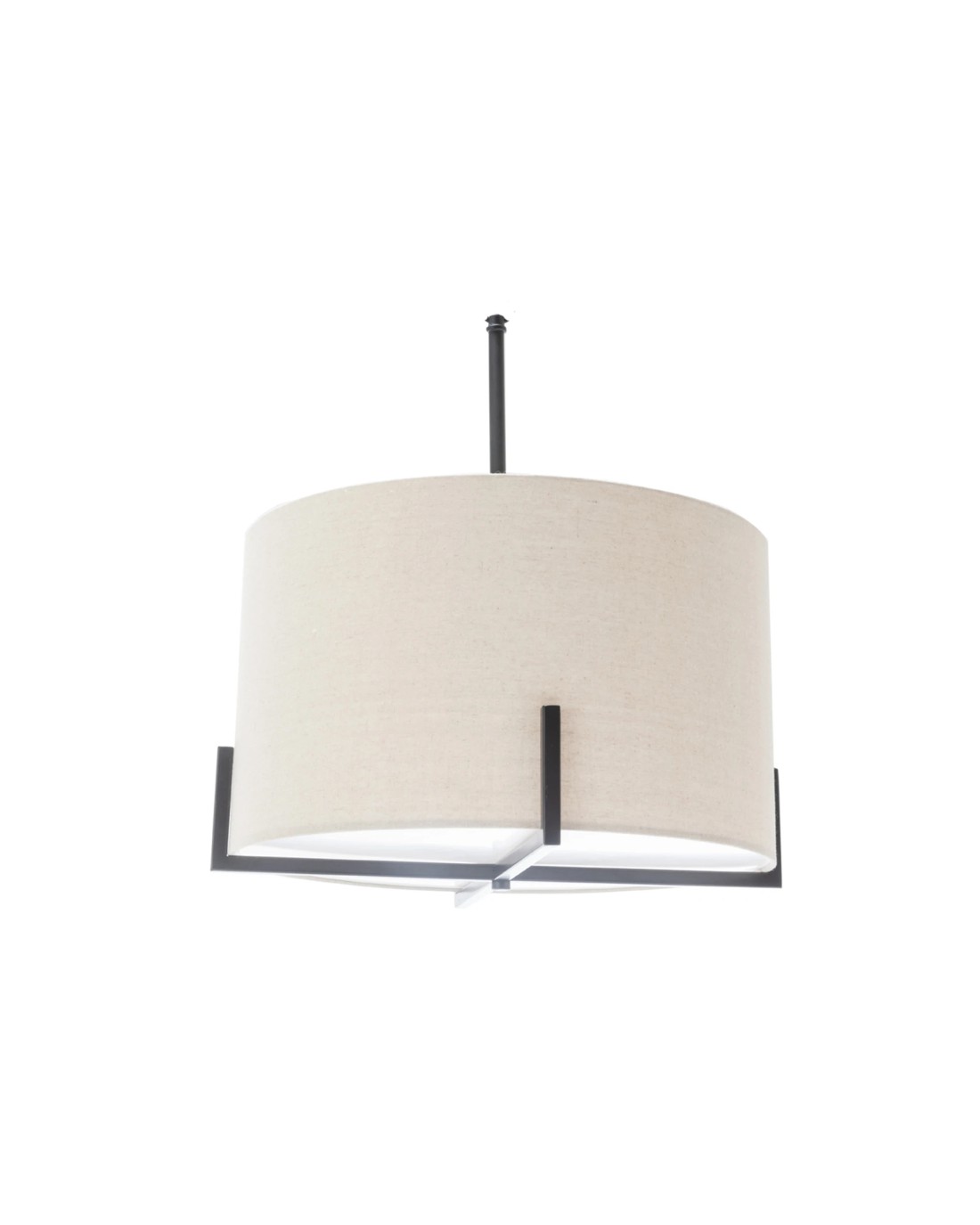 Modern Scandi Metal Hanging Pendant Lamp with Linen Shade - Matte Black