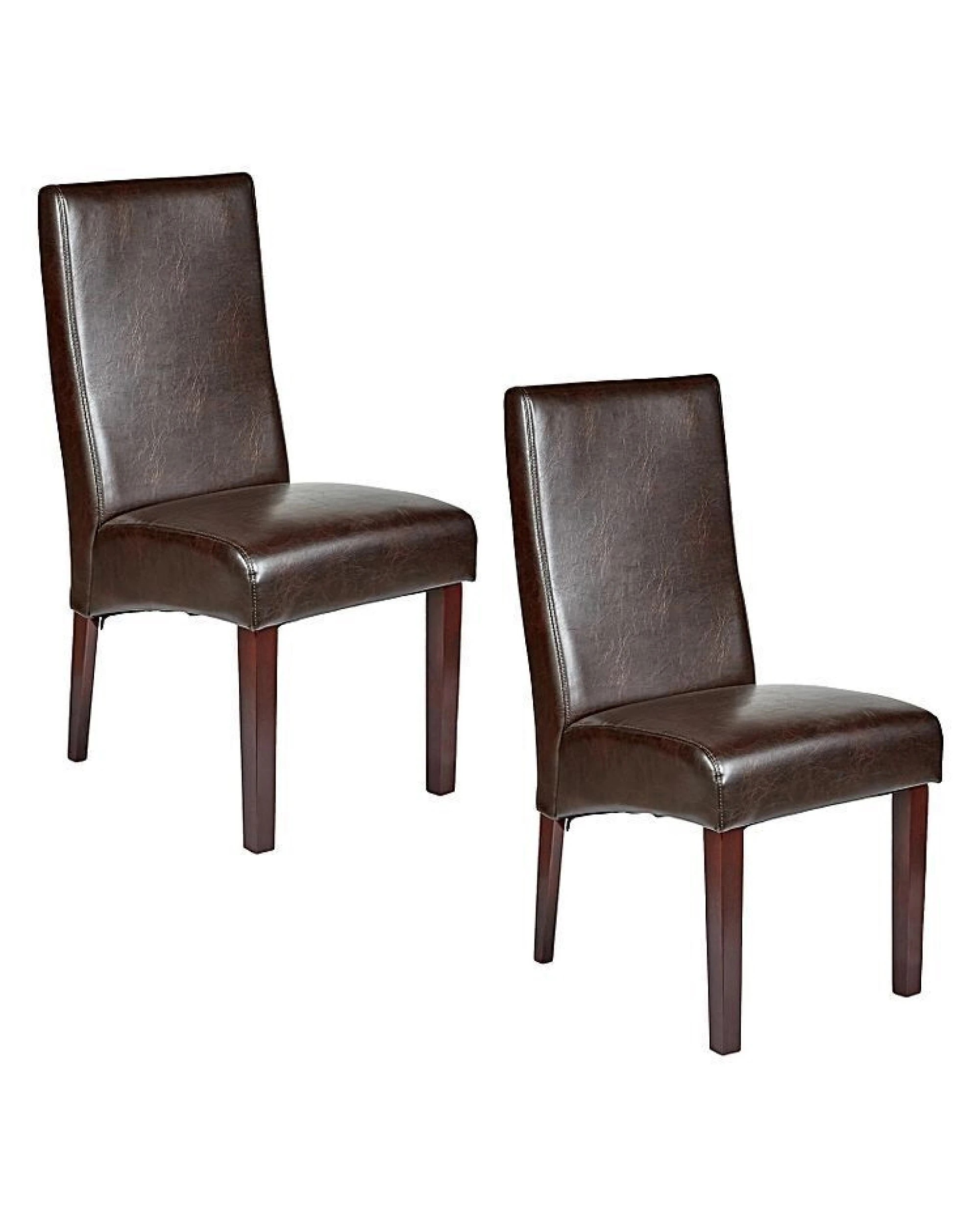 BR Home Set of 2 Rome Leather Brown Dining Chairs Durable Seat Wood Kitchen Cafe