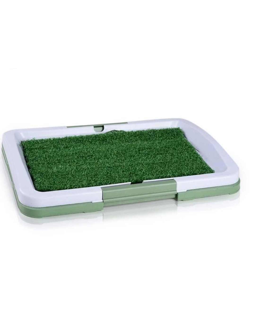 - Synthetic grass mat, elevated grid tray and base collection tray