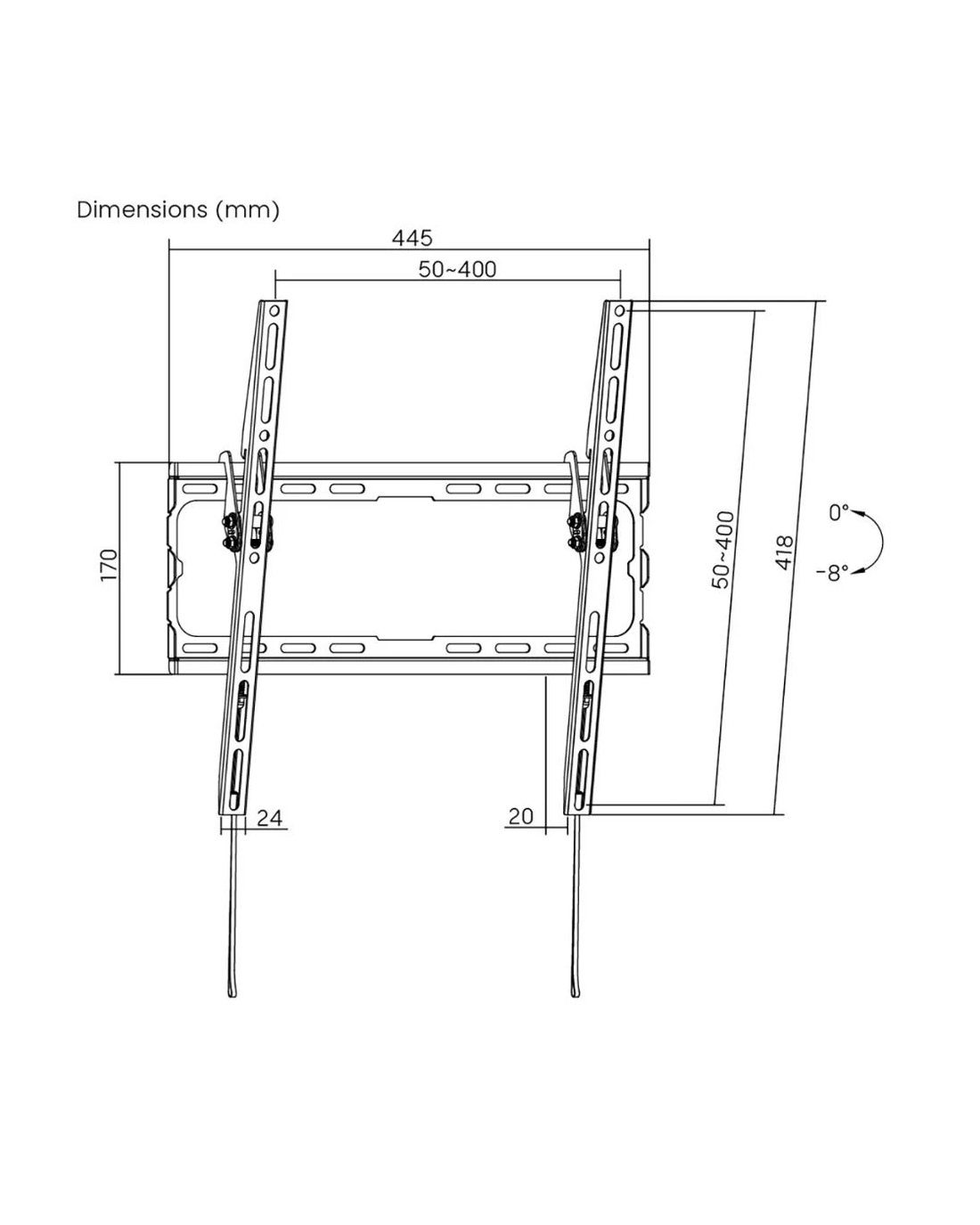 - This mount offers a tilt range of 0~8°.