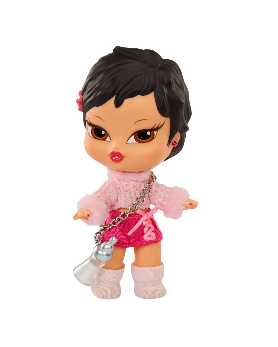 Before they were Bratz, they were Bratz Babyz! Step back in time with the Bratz and see how it all began, as they hit the runway with baby bratitude style. Our tiniest trendsetters bring big personalities to the catwalk, each girl showcasing a look that expresses their passion for fashion. They're taking the world of style by storm one adorable step at a time! Little Jade is wearing a fuzzy pink sweater, a silk-like skirt, and pink socks. Her hair is short and black with a butterfly clip. Each Bratz Babyz doll has a uniquely sculpted hairstyle and 5 points of articulation to strike tons of poses on stage! Each doll also comes with a baby bottle necklace that doubles as a keychain for you! Additionally, they each have an adorable, fuzzy telephone that matches their outfit. Jade's crazy cool fashion proves that big style can come in small packages! Collect all 6 Bratz Babyz Runwayz collectible fashion dolls—Cloe, Yasmin, Jade, Sasha, Dana, and Felicia! They're SO CUTE! Ages 6 +