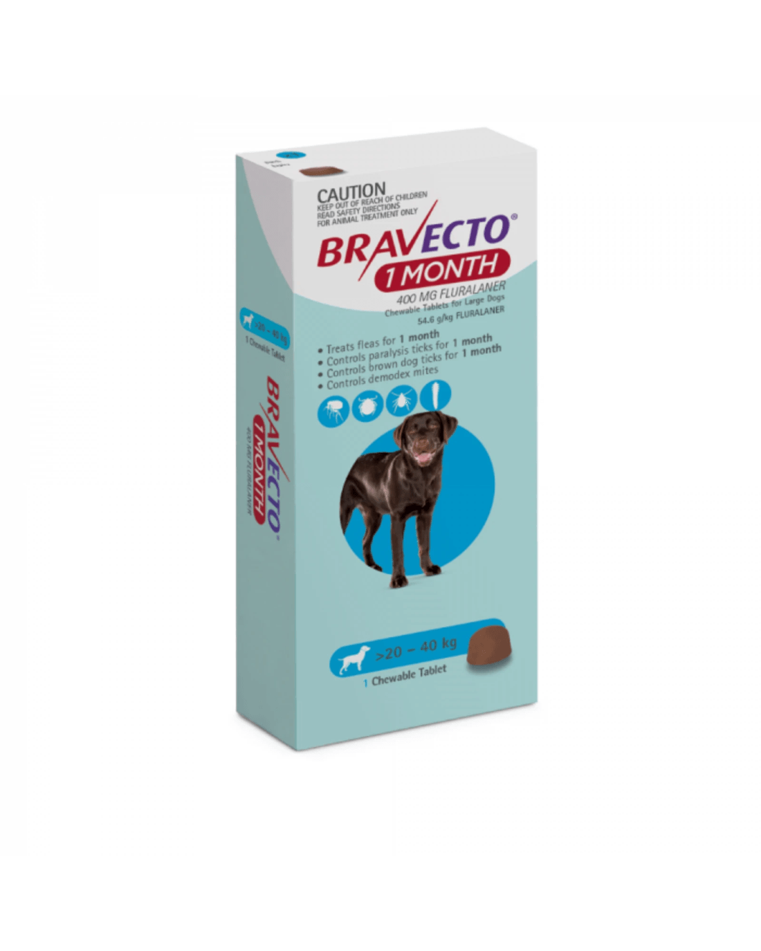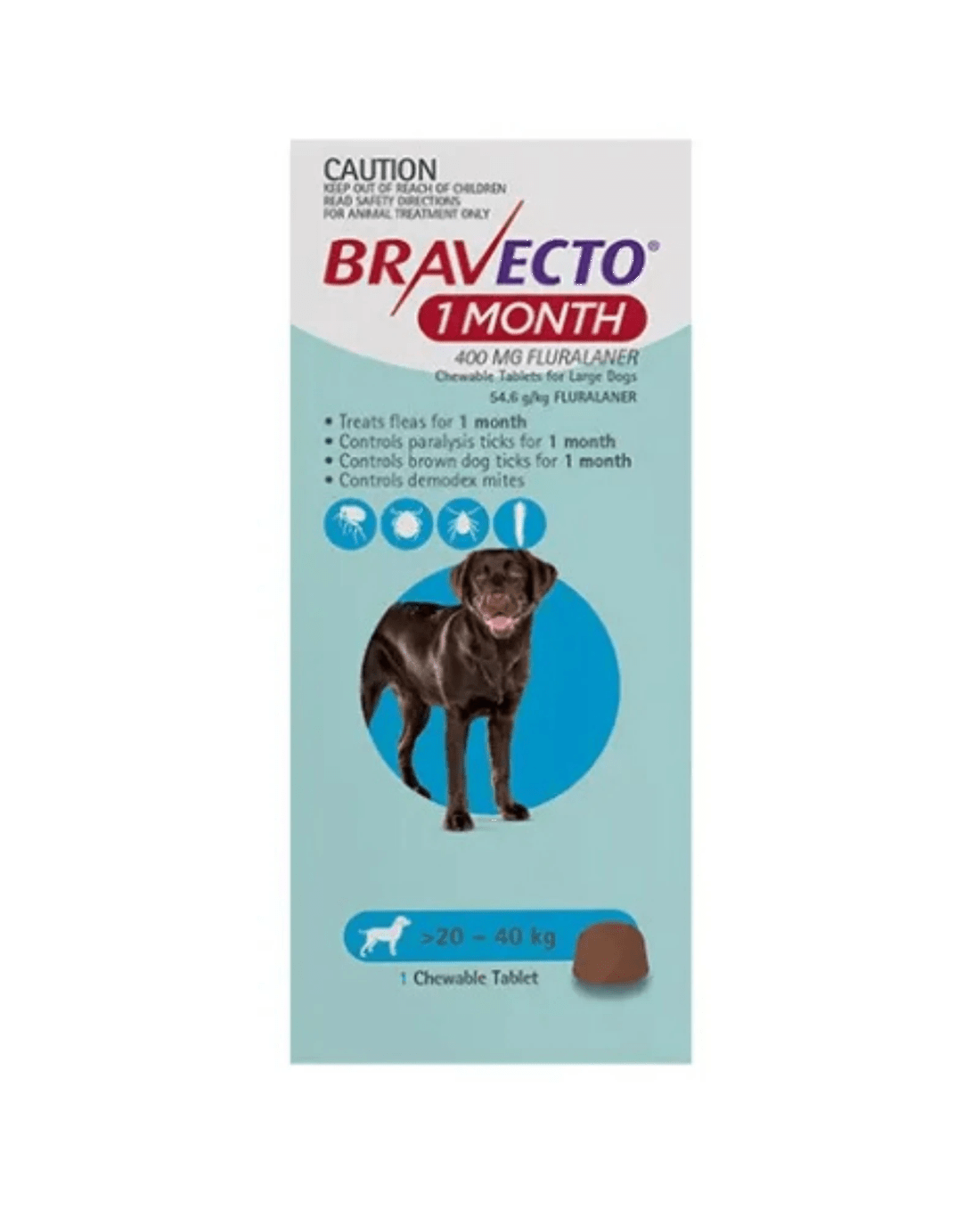 Sold by Your Pet PABravecto Chew 1 Month For Dogs Blue 20-40kg - 1 Pack