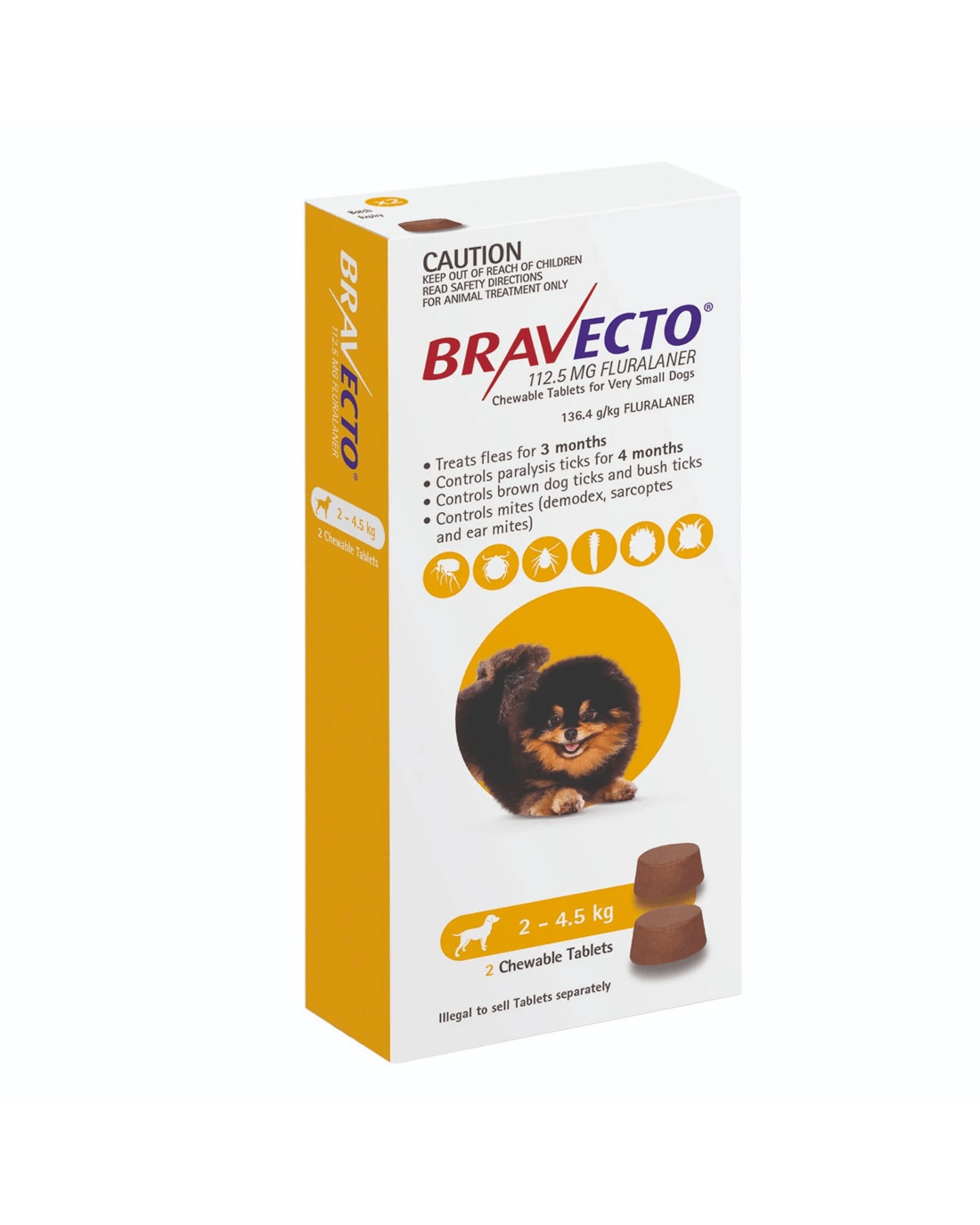 Sold by Your Pet PABravecto For Very Small Dogs Yellow 2-4.5kg Chew - 2 Pack