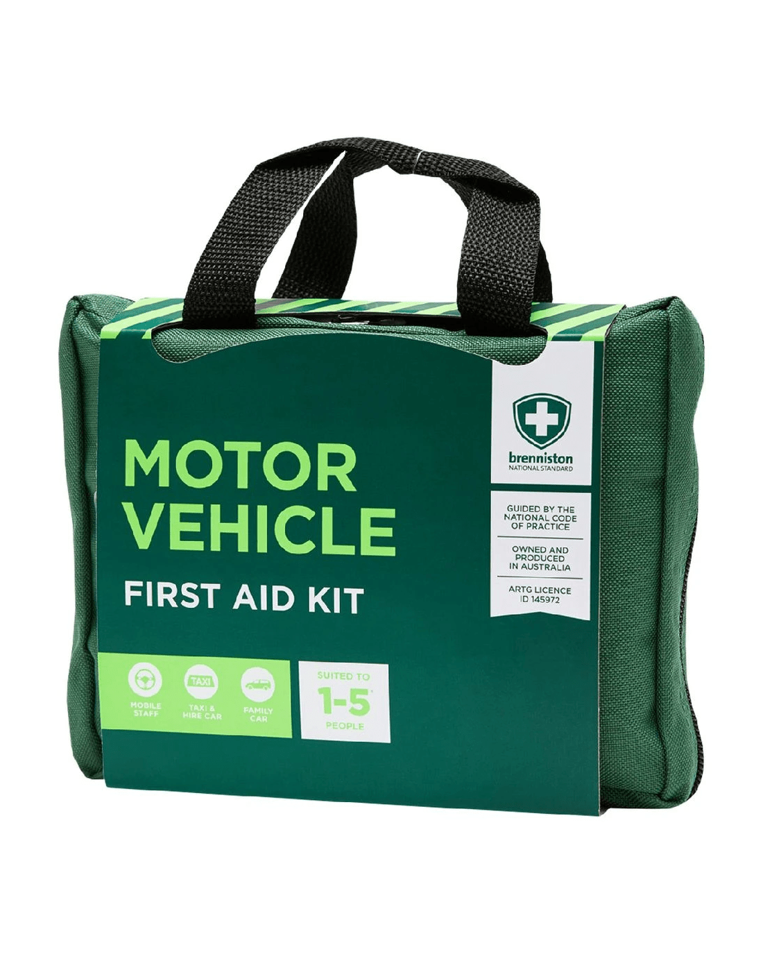 This Brenniston Motor Vehicle First Aid Kit can be stored in the car interior or glove box for roadside emergencies. It's handy for mobile staff or busy families who are always on the go. It includes a wide range of medical supplies and is suited to between 1 and 5 people.