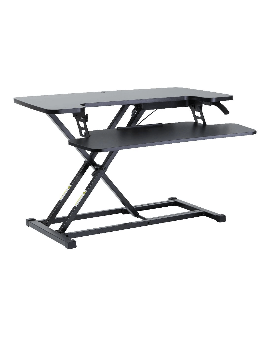The Brighton Sit Stand Ergonomic Desk Riser is perfect for long hours, whether you're working or gaming. It is height-adjustable with a range between 120 to 500 mm.