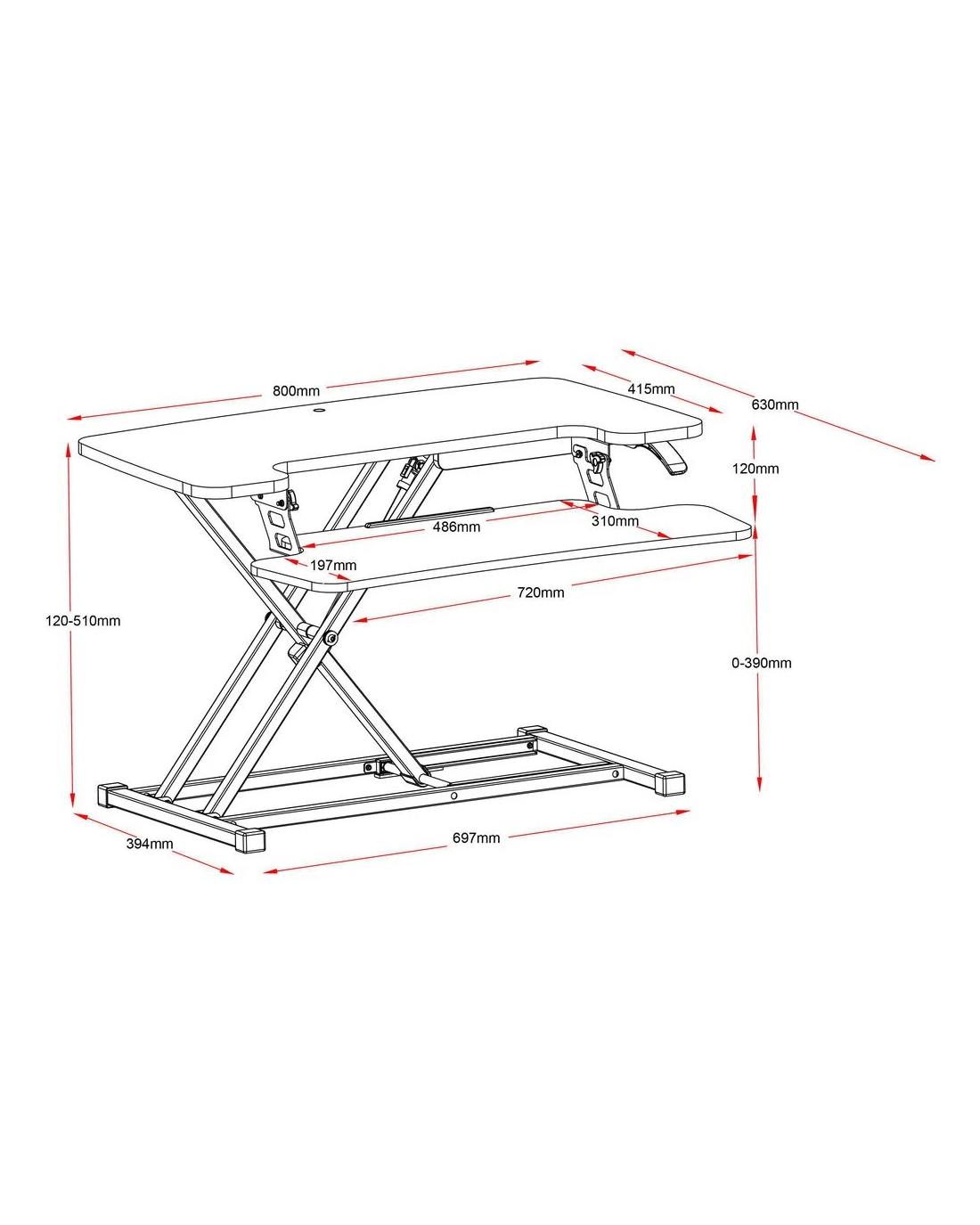- The desk riser measures 800 W x 630 D x 500 H mm once fully assembled.