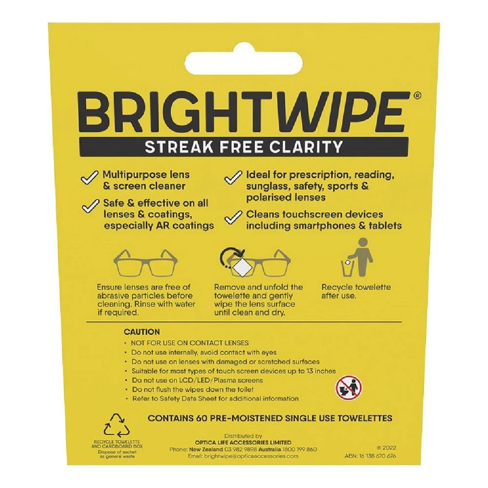Brightwipe Lens Cleaner Wipes 60 Pack