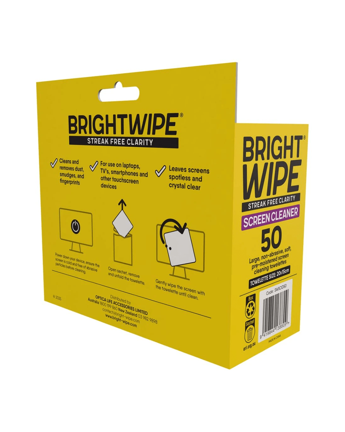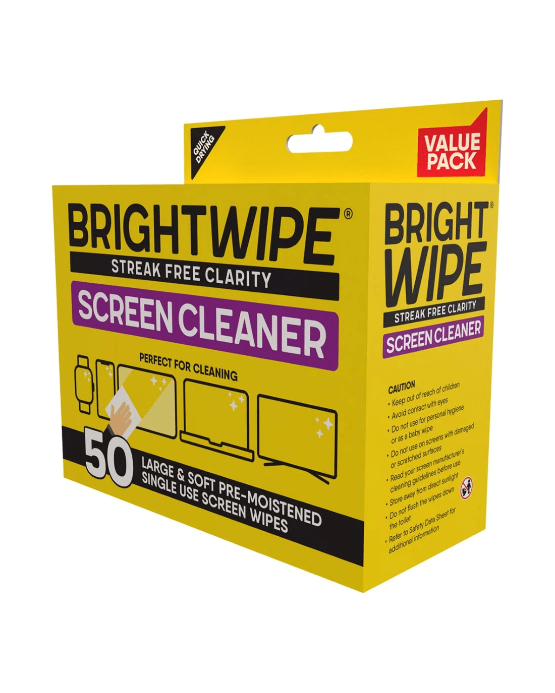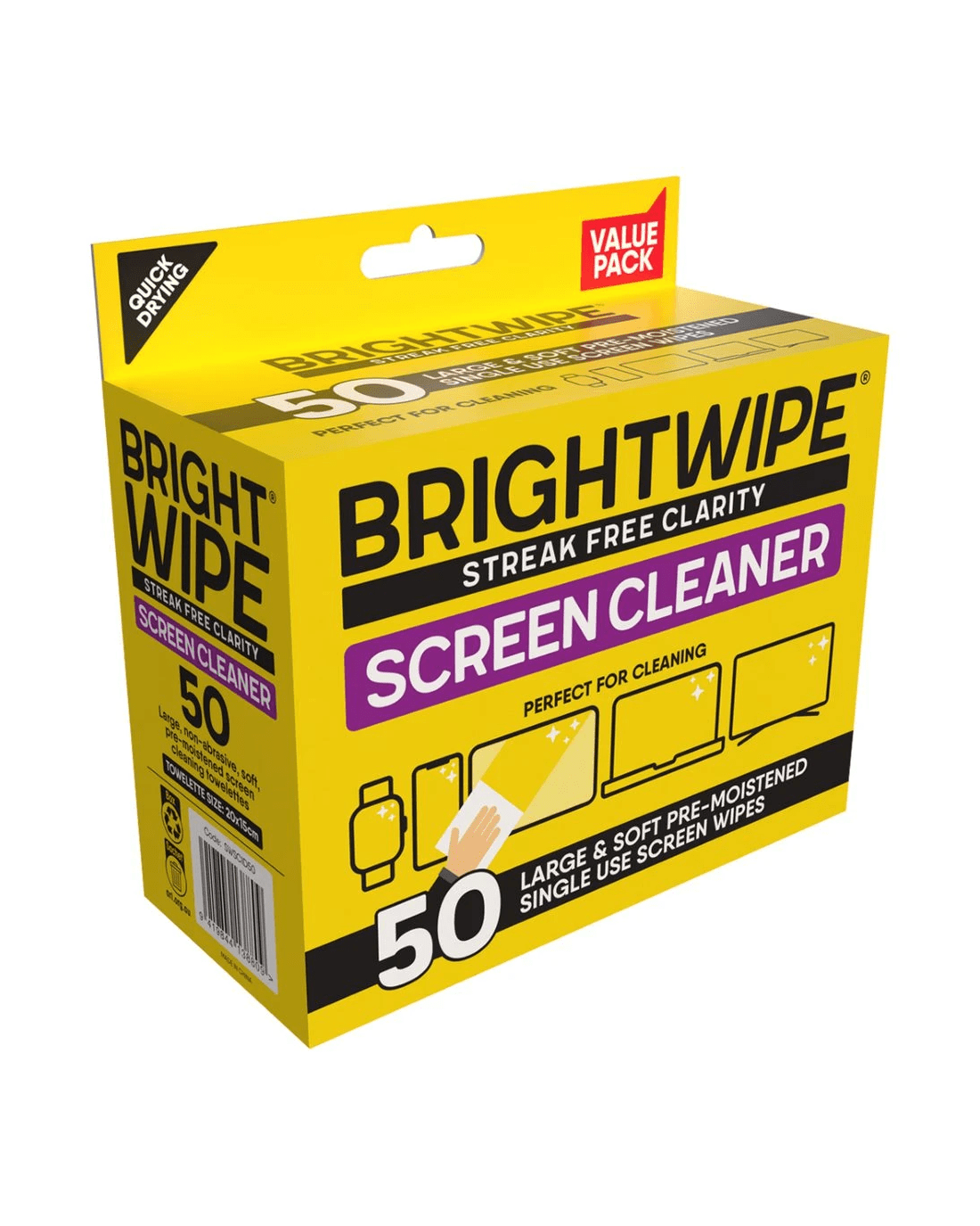 Brightwipe Screen Cleaning Wipes are formulated to remove dust, fingerprints and smudges, leaving you a streak-free and sparkling-clean screen. They are safe for all screens, including mobiles, TVs, tablets, and smartphones.