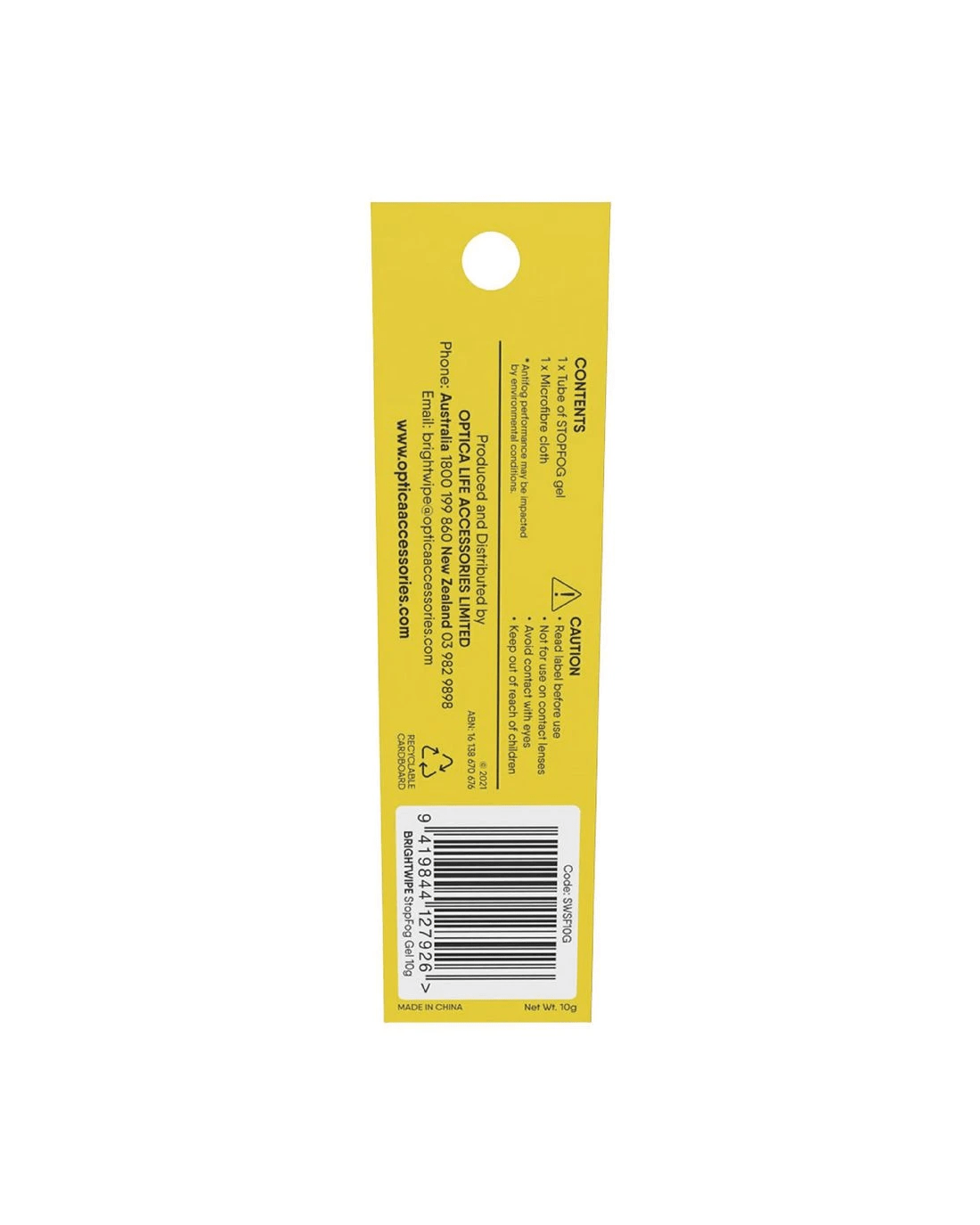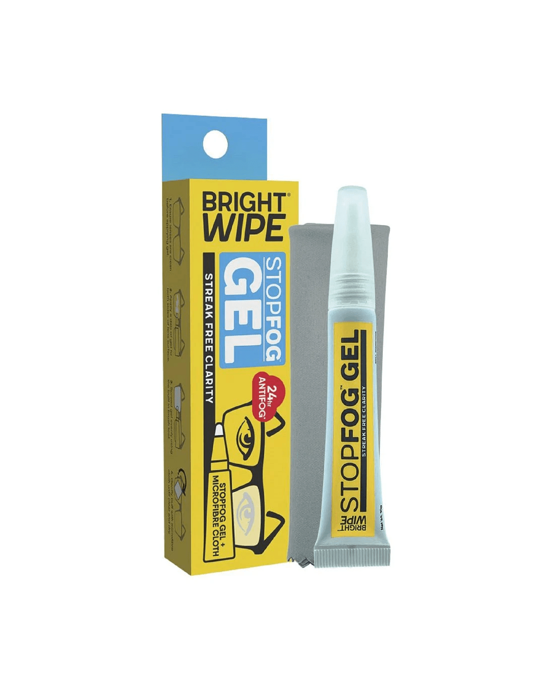 Brightwipe StopFog Anti-Fog Gel provides effective anti-fog protection when wearing masks with glasses or goggles. Each tube is fitted with a soft applicator brush for applying the gel formula on lenses before use. It contains 0% alcohol, and comes with an ultra-soft microfibre cloth to polish the lens surface for optimal results.