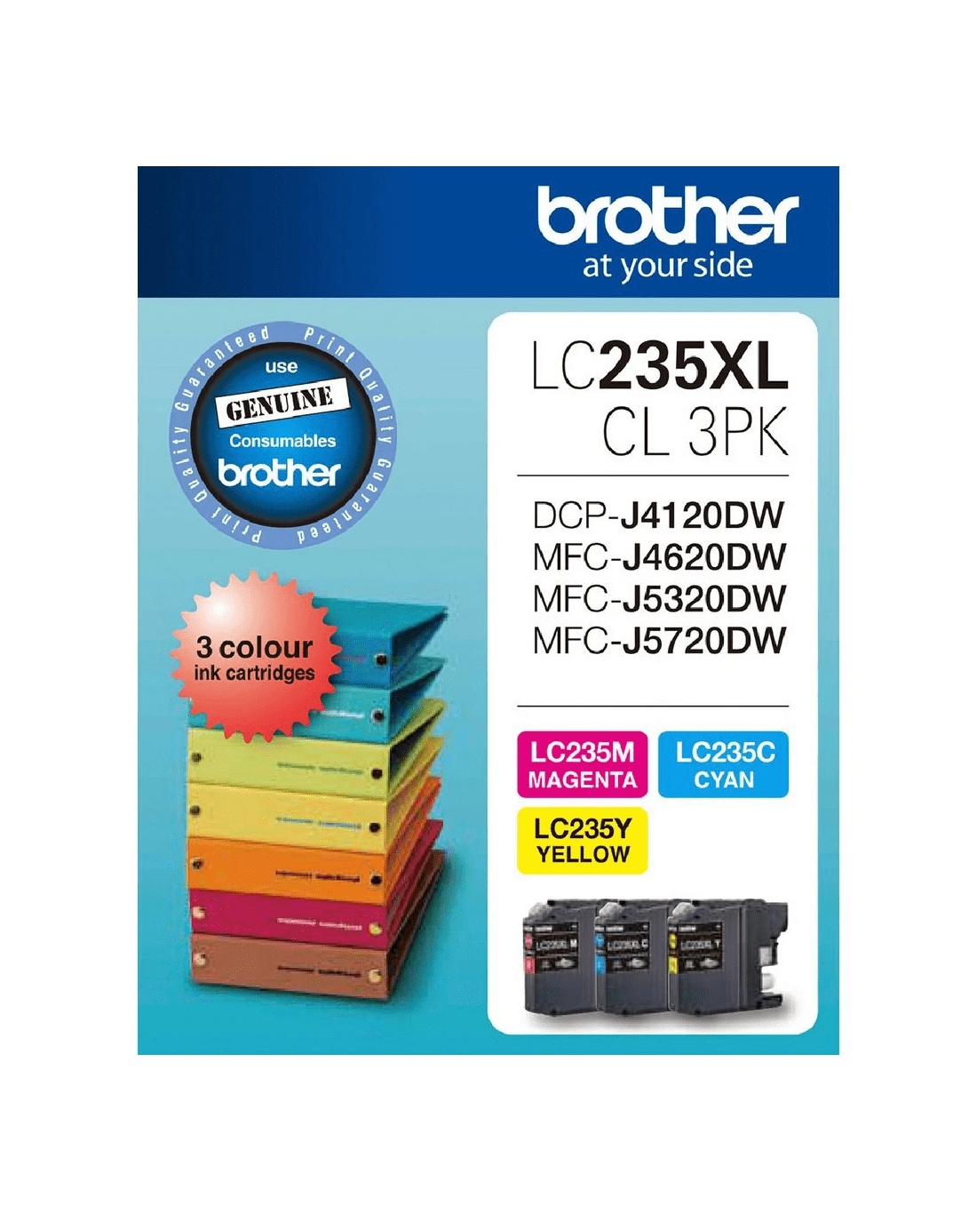 - This genuine Brother value pack may also be known by its manufacturer number, LC-235XLCLR3PK.