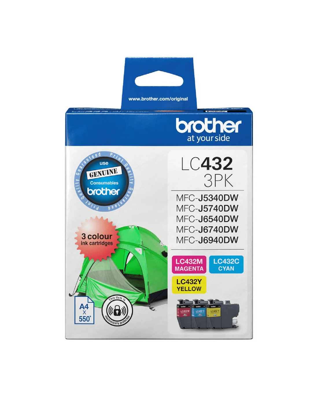 This Brother LC3432 Ink Cartridge Value Pack contains 3 different colour cartridges so you can replace all the coloured ink in your printer in one fell swoop. They each contain high quality ink for vibrant, clear printing results and have a page yield of 550 pages..