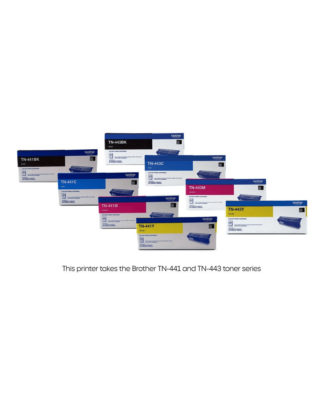 - This printer uses Brother TN441 & TN443 Toner Cartridges.