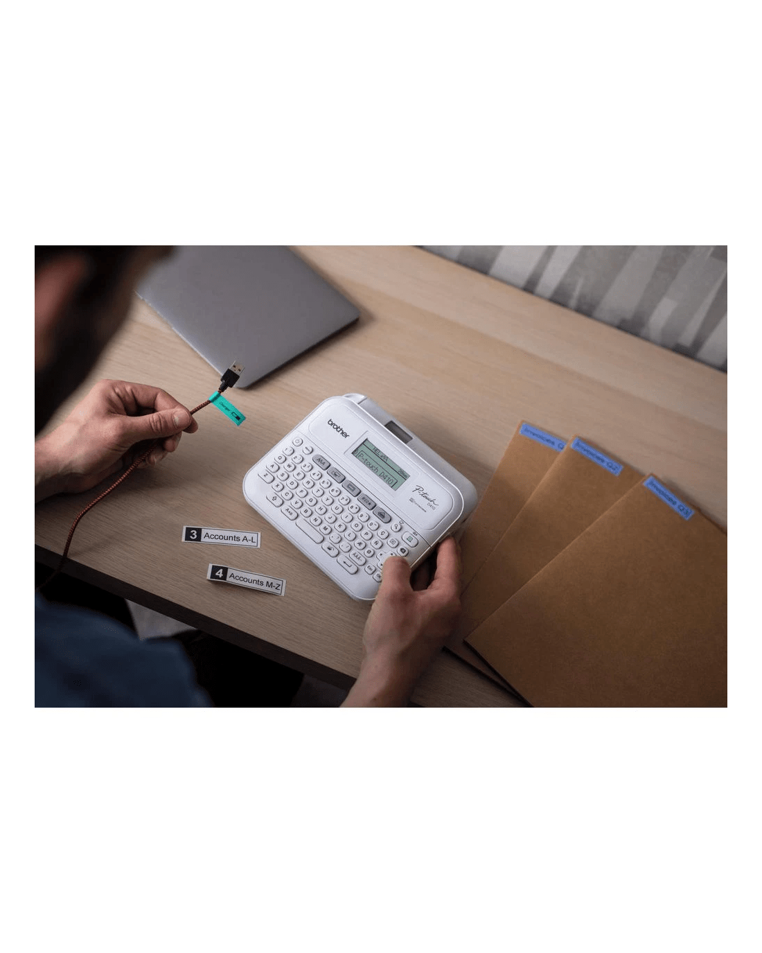 This Brother PTD410 Desktop Label Printer is a user-friendly label printer that's compatible with any lifestyle and way of working. With its large graphical display, QWERTY keyboard, P-touch Editor software, USB connectivity, and other handy built-in features, the PT-D410 is a versatile labelling solution that’s perfect for home and small office use.