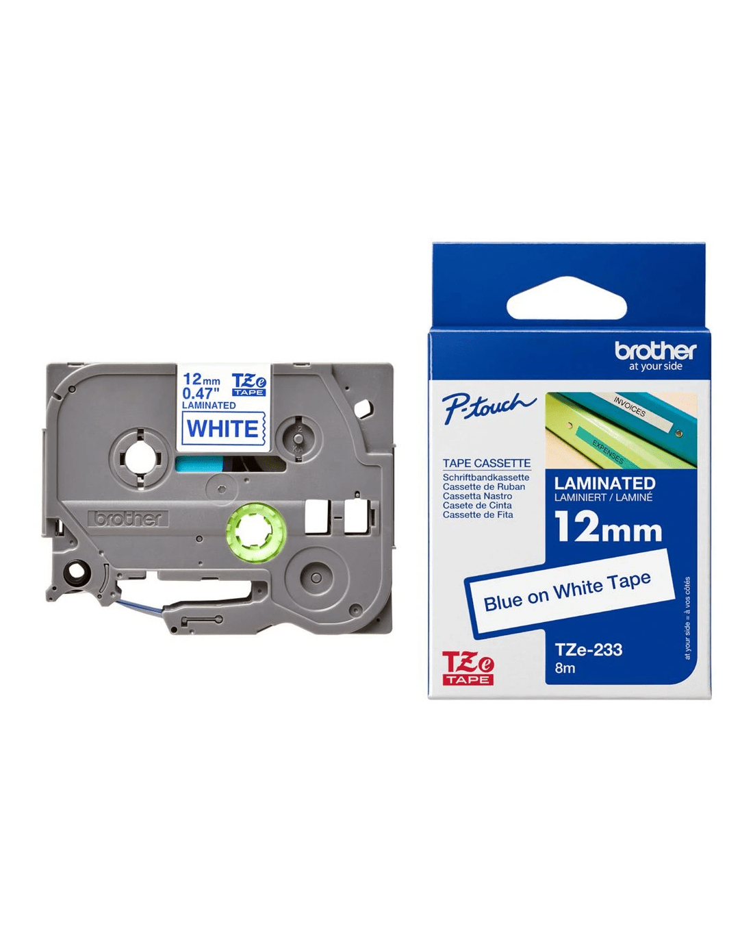 Brother TZe-233 Blue on White tape is perfect for restocking your Brother TZe label maker. It is constructed from super-clear polyethylene laminate which is temperature, fade, water and chemical resistant. The strong adhesive backing makes it easy to stick your labels to all your necessary items.
