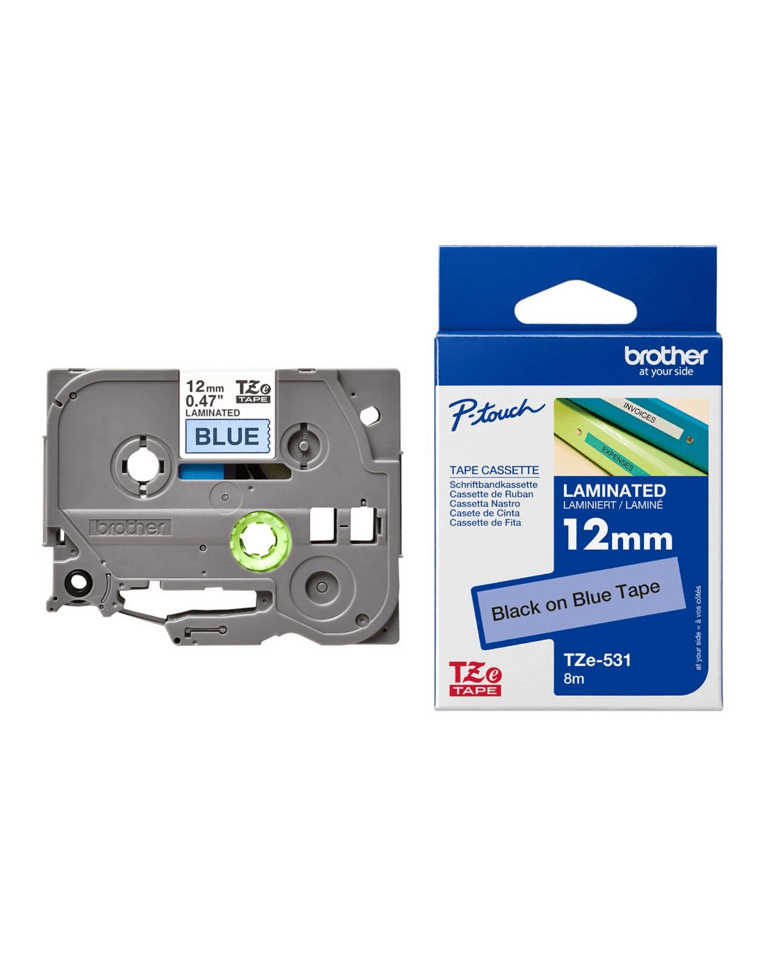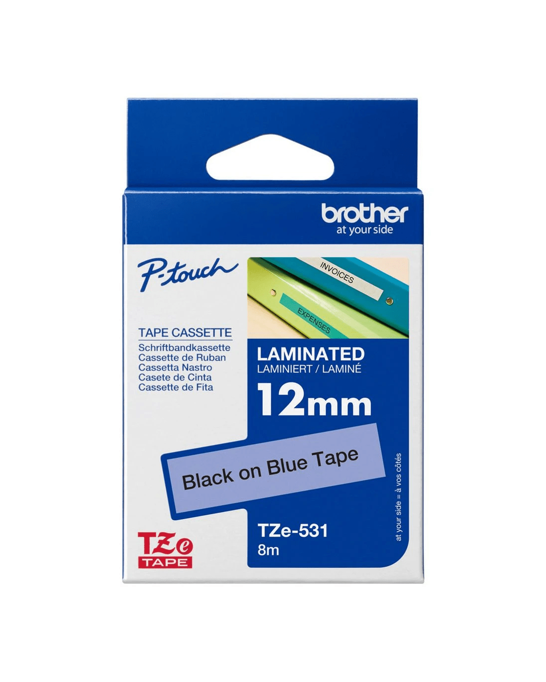 The Brother TZe-531 Black on Blue Tape is perfect for restocking your Brother TZe label maker. It is constructed from super-clear polyethylene laminate which is temperature, fade, water and chemical resistant. The strong adhesive backing makes it easy to stick your labels to all your necessary items.