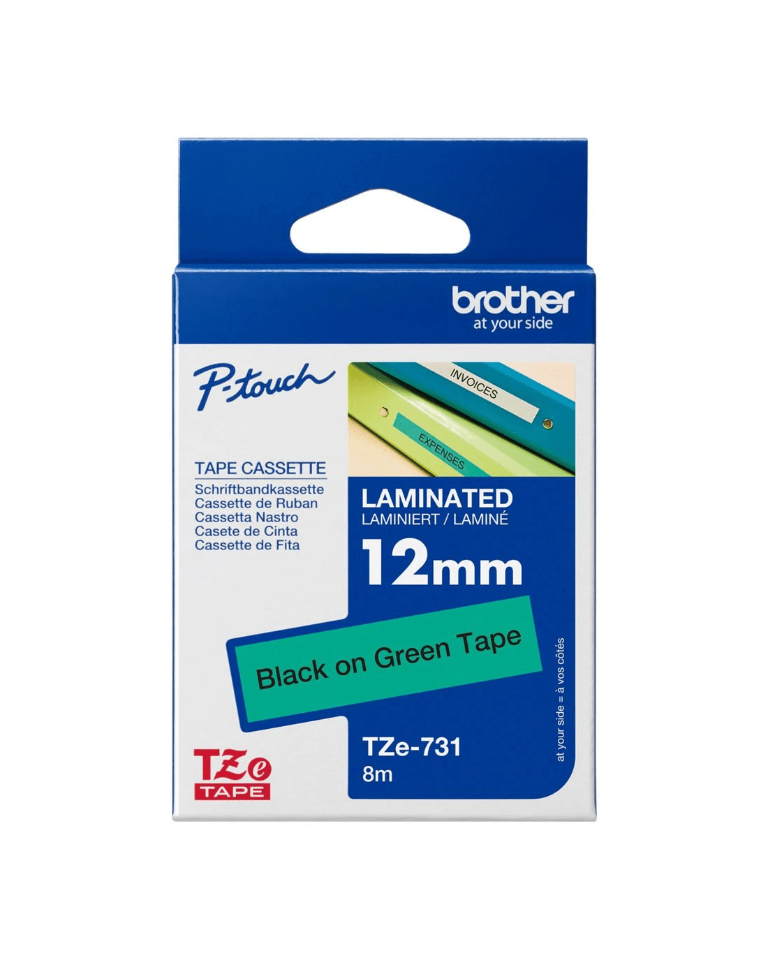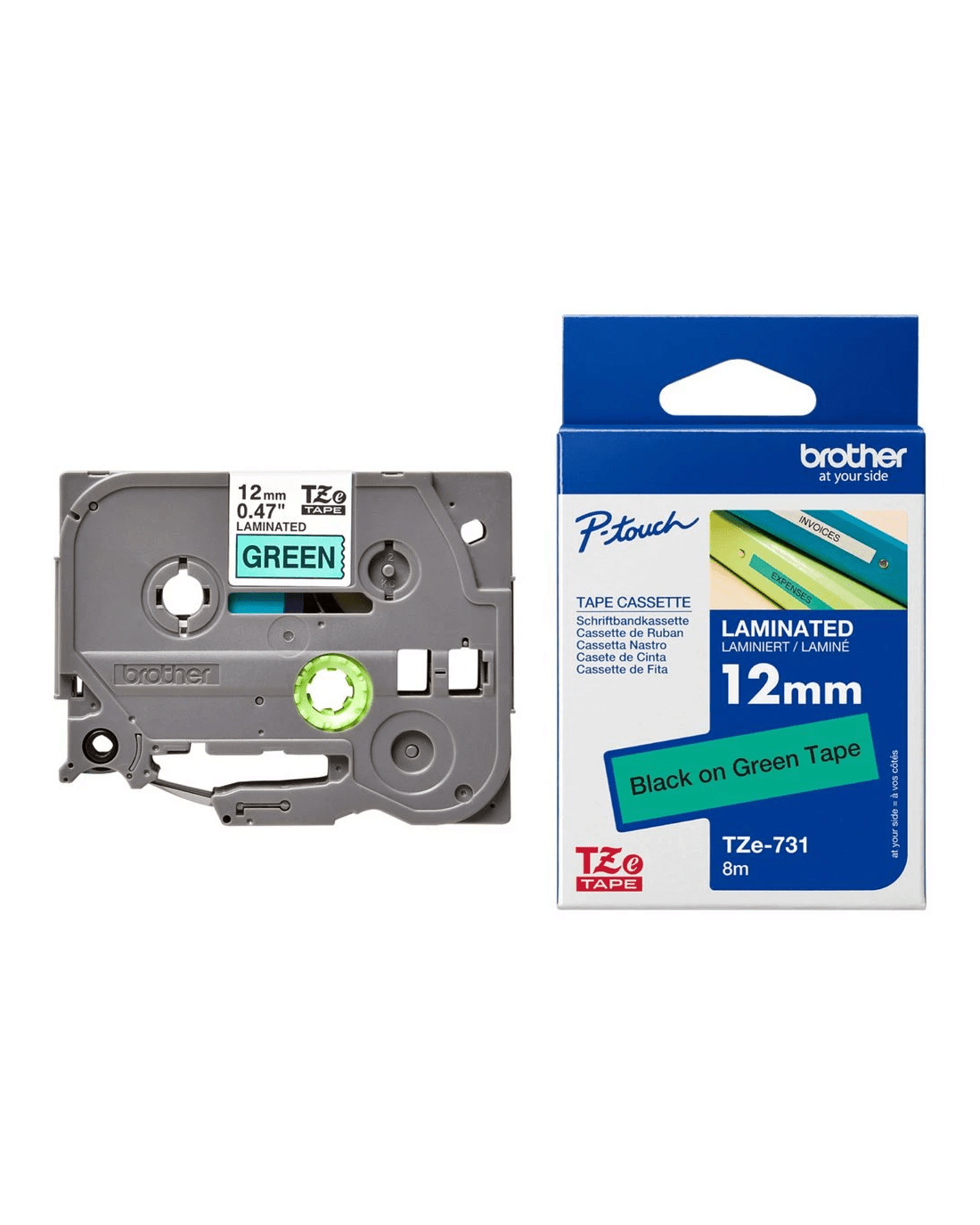 The Brother TZe-731 12 mm x 8 m Black on Green Tape is perfect for restocking your Brother TZe label maker. It is constructed from super-clear polyethylene laminate which is temperature, fade, water and chemical resistant. The strong adhesive backing makes it easy to stick your labels to all your necessary items.