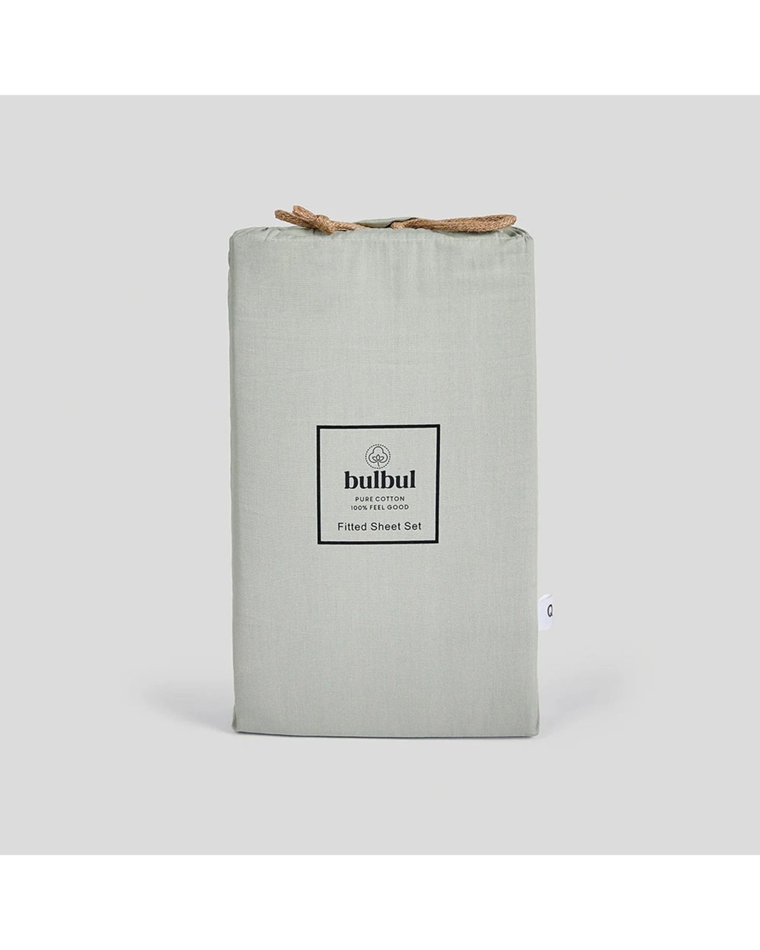 Bulbul Home Fitted Sheet & Pillowcase Bedding Set Desert Sage 375TC - King Single Bed - Pink