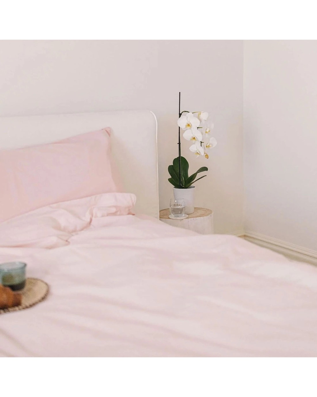 This set includes one fitted sheet and one pillowcase, both featuring a soft pink Salt colour that adds a fresh and cheerful atmosphere to your space. Made from classic cotton percale with a 375 thread count, it offers a crisp, breathable, and long-lasting finish for a comfortable sleep experience.