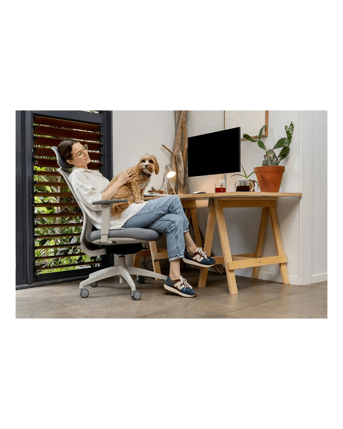 Sold by OfficeworksBuro Elan Ergonomic Chair with Headrest Grey Ergonomic Chairs and Desk Chairs