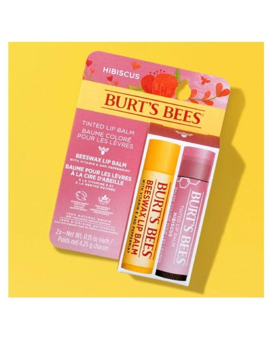 Burt's Bees Beeswax Lip Balm & Hibiscus Tinted Lip Balm Set