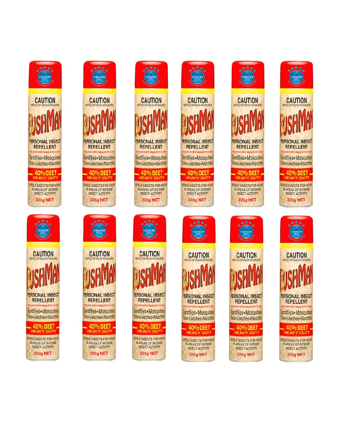 Sold by OfficeworksBushman Ultra Insect Repellent Aerosol 225 12 Pack