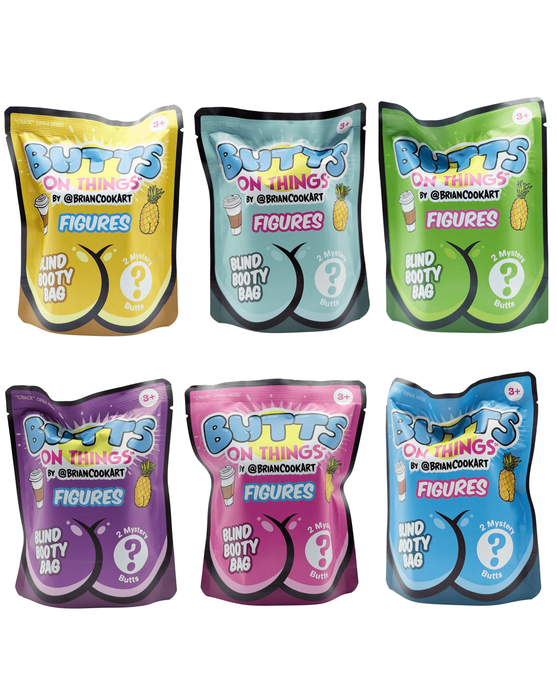 Surprise your shelf with Butts on Things™ - the wildly collectible blind bag figures that put tiny tushies on everyday objects. From snacks to succulents, each stylized mini features a playful rear view that's equal parts cheeky and charming. Open your Blind Booty Bag to reveal 2 mystery butt figures and start building your booty-ful collection.