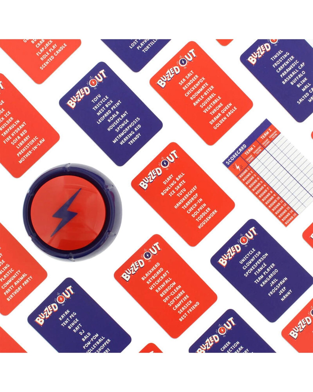 The quick-thinking word-describing game! Buzzed Out is not your ordinary card game; it's a thrilling mix of quick thinking, team strategy, and unpredictable timing that guarantees to keep players on the edge of their seats. Perfect for adults and teens aged 14 and up, this game elevates any gathering into a high-energy battle of wits and nerves. Whether you're planning a family game night, a party with friends, or just looking for a fun way to enhance your get-togethers, Buzzed Out promises endless entertainment and laughter. Dive into this word-describing guessing game with a twist, where the pressure is on not to be caught with the card when the buzzer goes off. Ready for some electrifying fun? Ages: 14 + | Players: 4 + | Playtime: 20 - 30 min