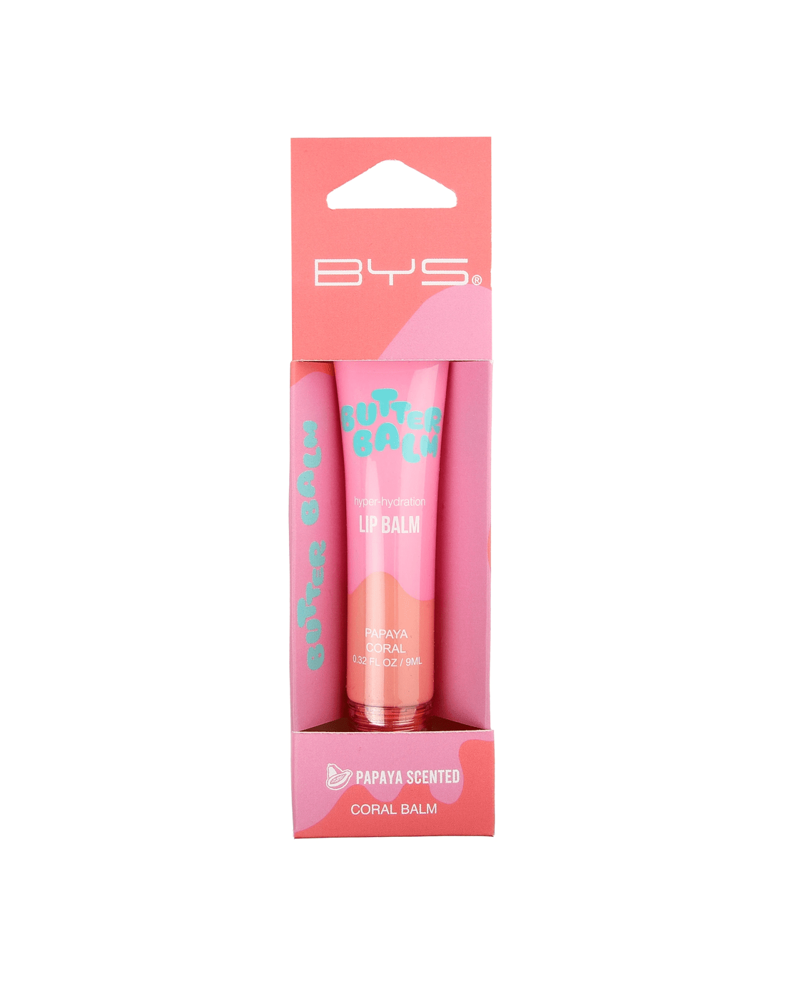 Packed with hyper-hydrating ingredients, BYS Butter Balms are designed to rescue dry lips and keep them feeling super soft. These gloss-balms have a smooth, non-sticky texture and is formulated with nutrient-rich shea butter and jojoba oil. Features a broad, contoured applicator for easy application. Available in three delicious scents, 'papaya' is a peachy coral balm.