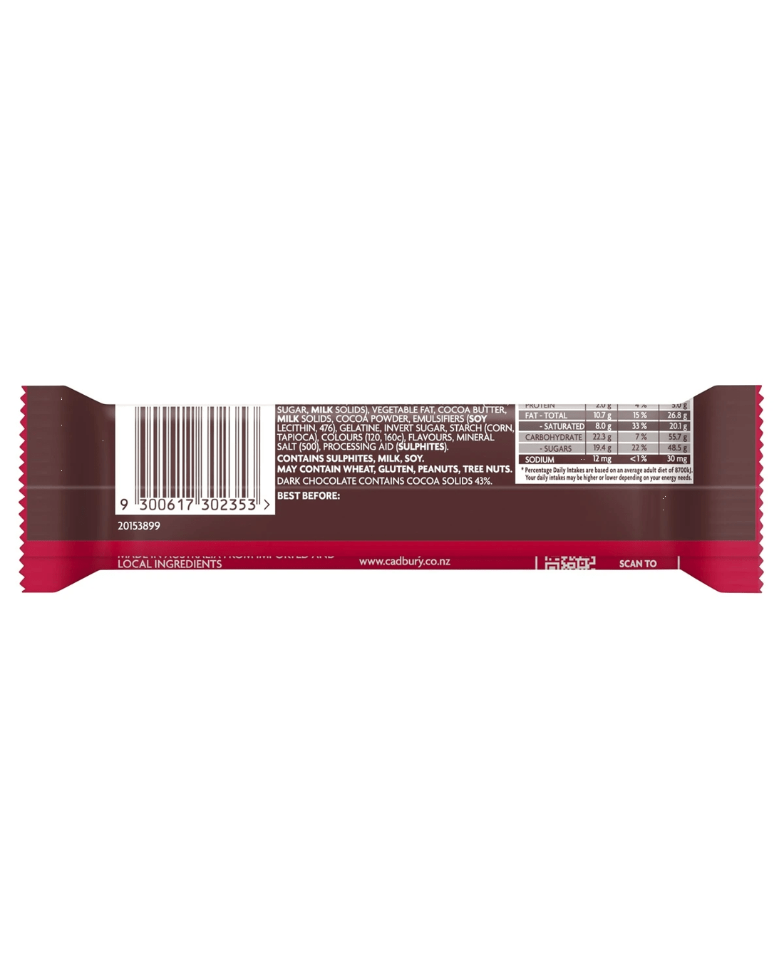 - Allergen information: Contains sulphites, milk and soy. May contain wheat, gluten, peanuts and tree nuts.