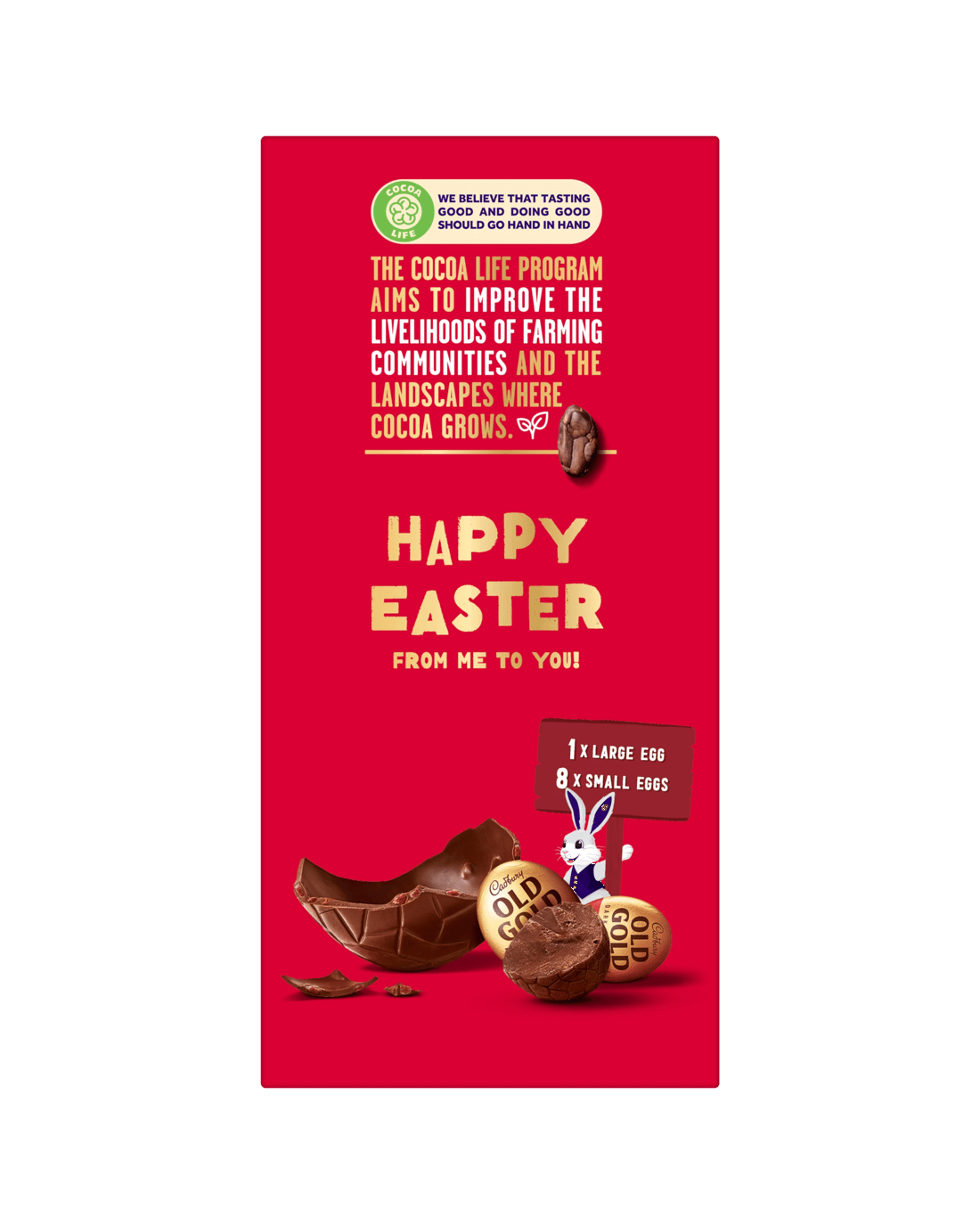 - Includes 1 x 110g Cadbury dark chocolate hollow egg and 8 x 7g Cadbury Old Gold mini eggs